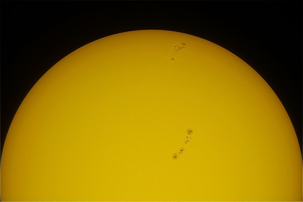 31 мая мной было проведено наблюдение Солнца. На этот раз наблюдение проводилось с помощью сразу двух телескопов ТАЛ65 и Sky Watcher BKP 2008. На этой неделе на Солнце наблюдается малое и незначительное количество солнечных пятен.Тем не менее, 31 мая на Солнце были заметны 2 группы солнечных пятен AR2356 и AR2357.