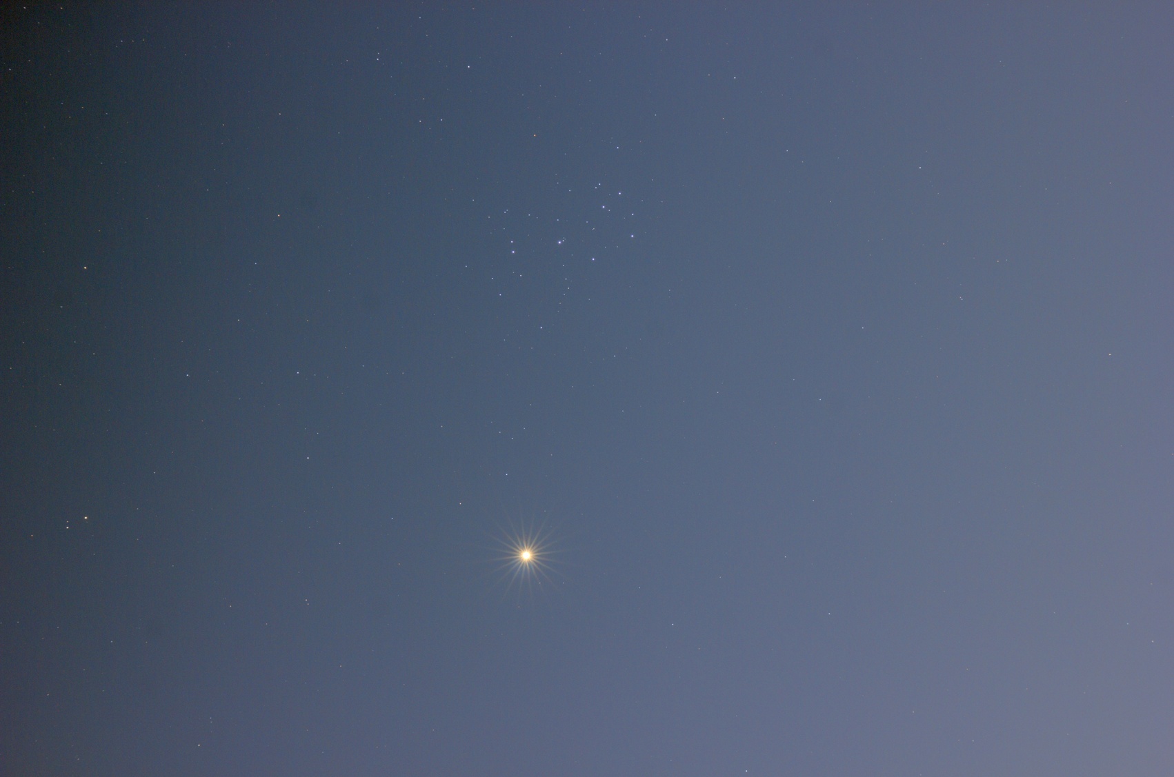 А я добавлю такое фото. Планета и Дипскай. Правда, уже не день, но еще и не ночь - Солнце уже зашло, но сумерки еще не закончились.