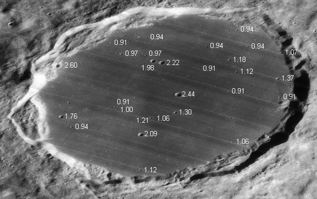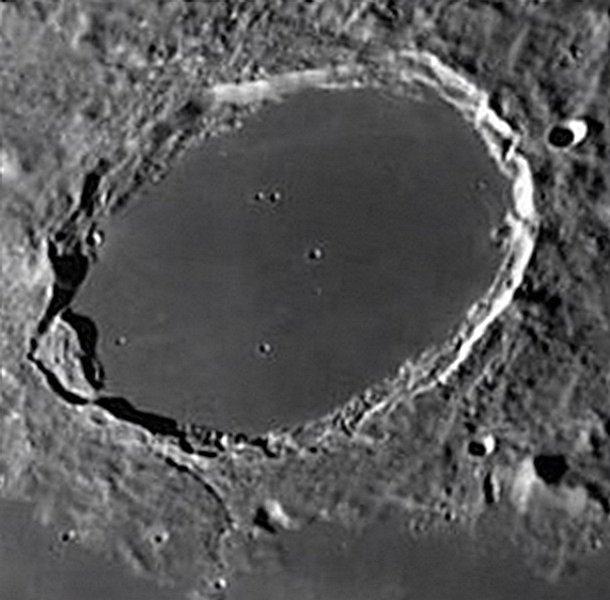 Дно кратера Платон стало предметом повышенного внимания среди любителей астрономии, поскольку мелкие кратеры на его дне являются индикатором качества оптики телескопа. Когда атмосфера неустойчива, мелкие кратеры могут быть невидны даже в средние и большие любительские телескопы. Когда Луна достаточно высока и атмосфера относительно спокойна в кратере Платон можно распознать четыре и больше кратеров. На прошлой неделе при фазе Луны примерно 80% я провел испытание оптики своего Delta Optical-GSO Dobson 10" F/5 M-CRF по кратеру Платон. Луна была примерно 25 градуса над горизонтом и шансов на успех было не много. Однако мне крупно повезло. Поднялся порывистый ветер и сдул все восходящие потоки воздуха и попутно продул мне трубу и оно хорошо термостабилизировалась. Перед наблюдениями я выполнил самую тщательную юстировку оптики. Произошло чудо и мне удалось разглядеть шесть кратеров на дне Платона. Использовал окуляры TV Padian 4mm, Meade UWA 5,5 mm 82 гр. и биноприставку WO с окулярами 66 гр. 15 мм совместно с японской Барлоу Celestron Ultima 2x. Комфортнее всего было наблюдать в биновьювер, поскольку глаза при этом совершенно не устают и легко дождаться моментов почти полного успокоения атмосферы и разглядеть мелкие детали. Кроме того масштаб изображения был максимальным, даже немного большим чем в TV Padian 4mm.  Просмотров: 1883