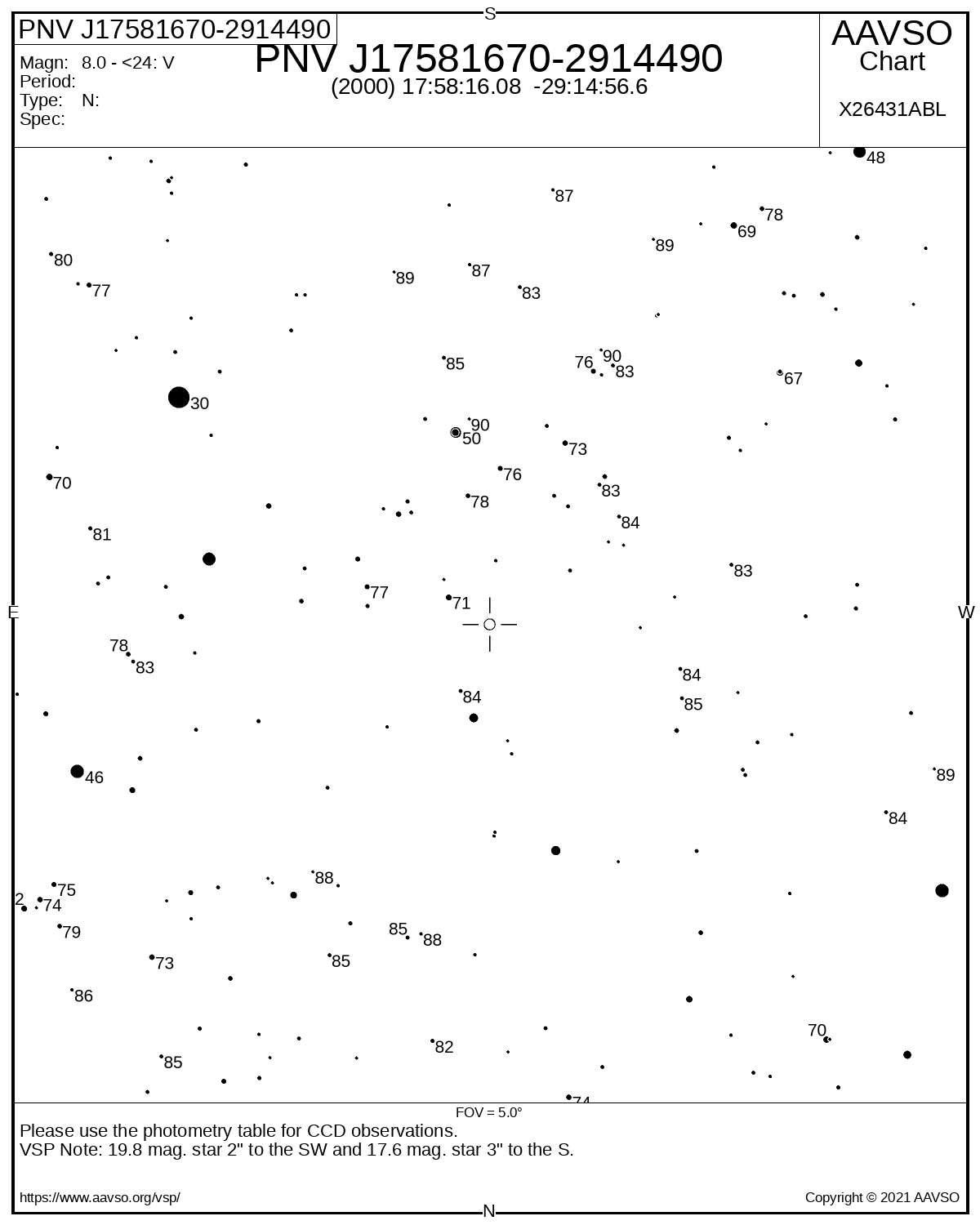 Координаты: R.A. = 17 58 16,70 Decl. = -29 14 49,0