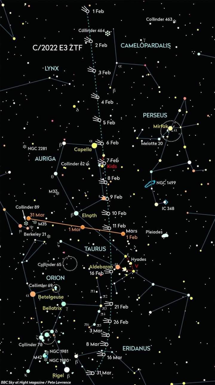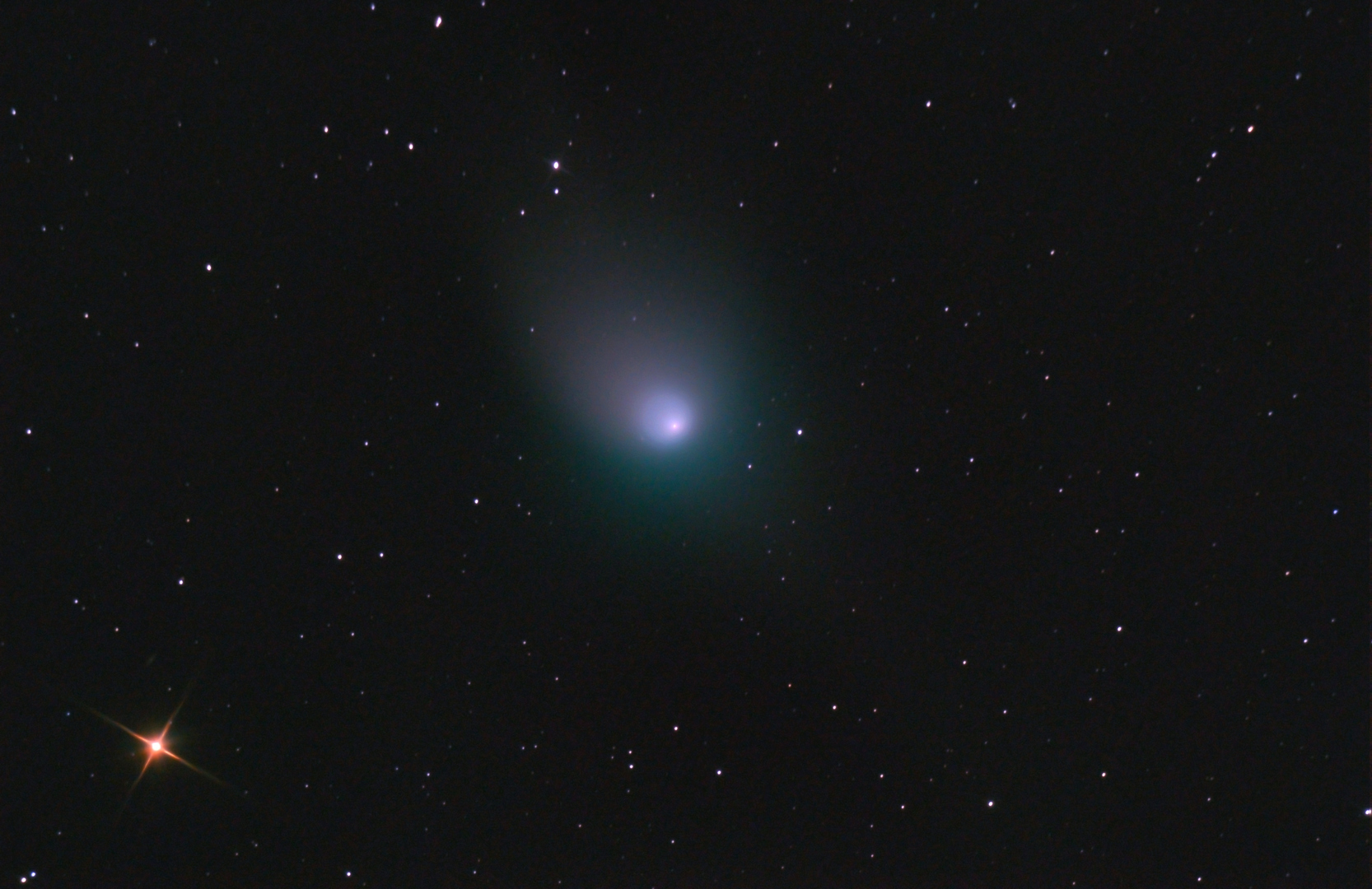 Сегодня 28.01 утром подготавливал к работе SW15075 с электронным слежением, уж очень надоело крутить всё в ручную. Погода была морозная с диким инеем - аппаратура "побелела" за минут 15, но хотелось получить результат годичной работы. Обьектом стала многократно наблюдаемая мной комета C/2022 E3 ZTF в DOB-10 : и на этот раз была обнаружена в гид 8х50. С каждым уваличением и в 150мм было интересно смотреть с 7мм окуляром 107Х/33,5' прекрасно была видна голова, с 9мм 83Х/43' треть поля зрения занимал хвост и я решил сфоткать комету уж если такая яркая , но меня ждало разочарование - получилось мало кадов и качество плоховатое.Плохо комета была видна и чисто визуально. Судите сами : обьектив Юпитер-36В с Nikon D60 1k 30s ISO~3200.