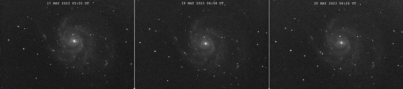 Развернул свой SW2001 и без труда навелся на хорошо известную галактику М101. Она легко различалась в штатный искатель, а в поисковый окуляр ES30x70 сверхновая просто бросалась в глаза на фоне туманности.