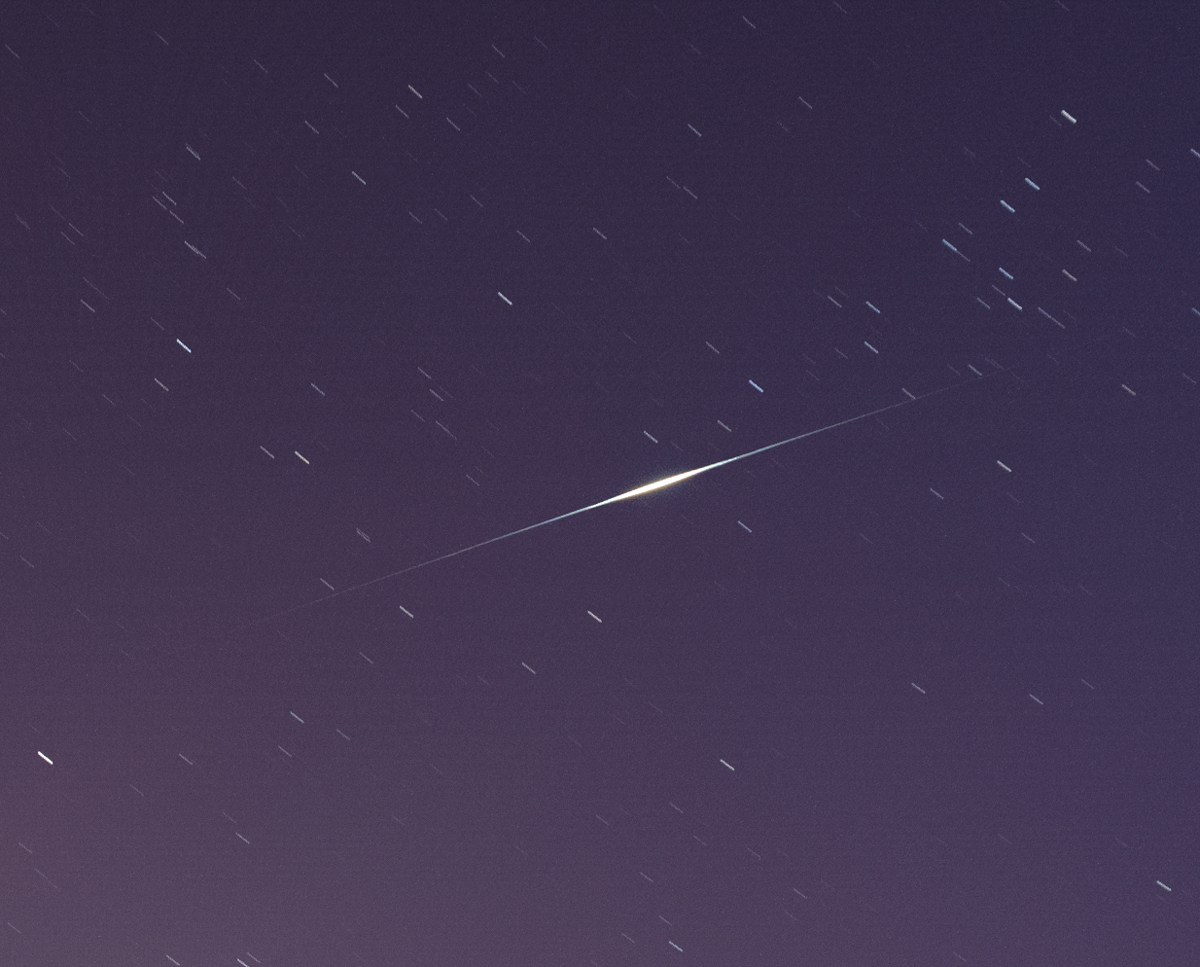 Вспышка Иридиума 22 Яркость -6,6 Снято в г.Киев. 17.07.2017 г. Nikon D5100 Обьектив 18-105 мм 18 мм/ISO 800/F-3.5/ 8" Сложено из 8 фото в ФШ.