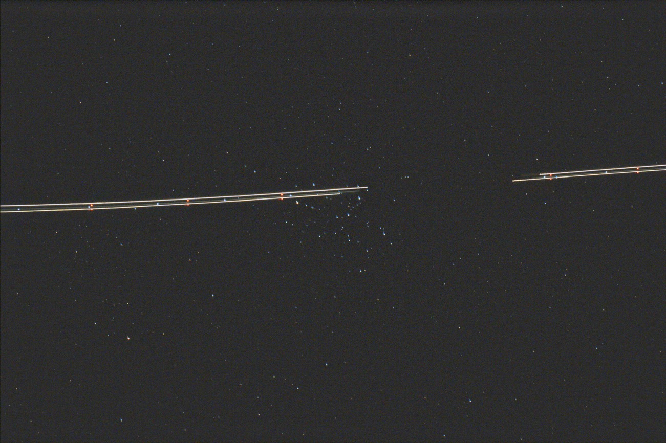 Хотя это и не Иридиумы, но выложу сюда Вчера во время съемки М6, сложено 2 кадра по 20сек  Просмотров: 2446