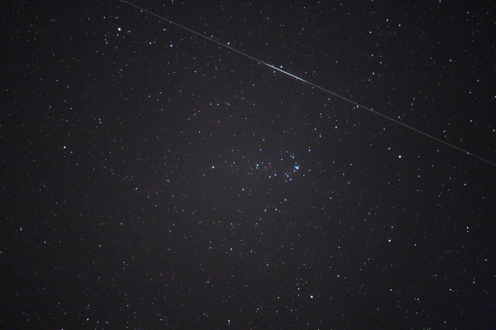 вчера в кадр попала небольшая вспышка(если ее можно так назвать), на фотоаппарате время не настроил, так что рамки 20.05- 21.20 Глянул в планетарии, за это время этот участок пересек только один спутник funcube-1(AO-73). Глянул в интернете, этот спутник имеет размер 10х10см- значит не он. F250мм/5.6/ 30c