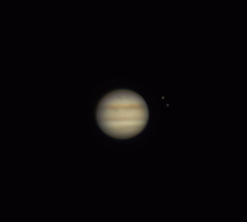 Вчера прочитал в астрособытиях(спасибо Михаилу) о том что на Юпитере будет две тени от спутников, решил попробовать снять данное событие, к сожалению тепловые потоки от балкона сильно мылили картинку, все что смог вытянуть.