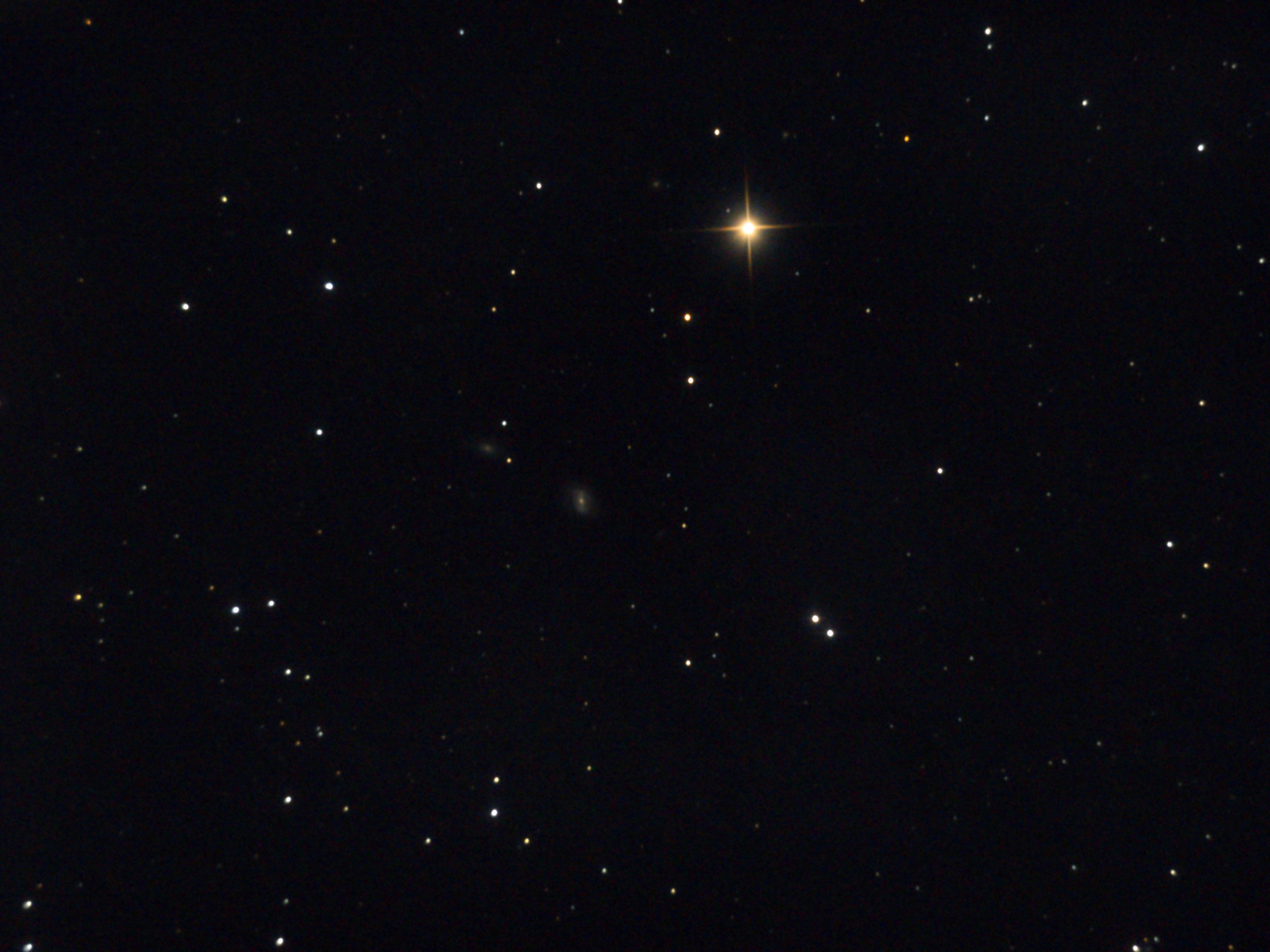 в ночь с 15.05 на 16.05 до 24:00 потом заволокло дымкой. м-40 или Winnecke 4 или W,(HD 238107 Более яркий и HD 238108 более слабый компонент) . в большой медведице , правее ниже центра кадра две звезды , оптическое расстояние между ними 0.8 угловых минуты = 49'' . оптически двойная звезда M-40 Winnecke 4 образует треугольник с галактикой NGC 4290 12.7m. и звездой 70 Ursae Majoris (ещё проглядывает NGC 4284 большая и PGC 39934 меньшая по обе стороны от 4290 )