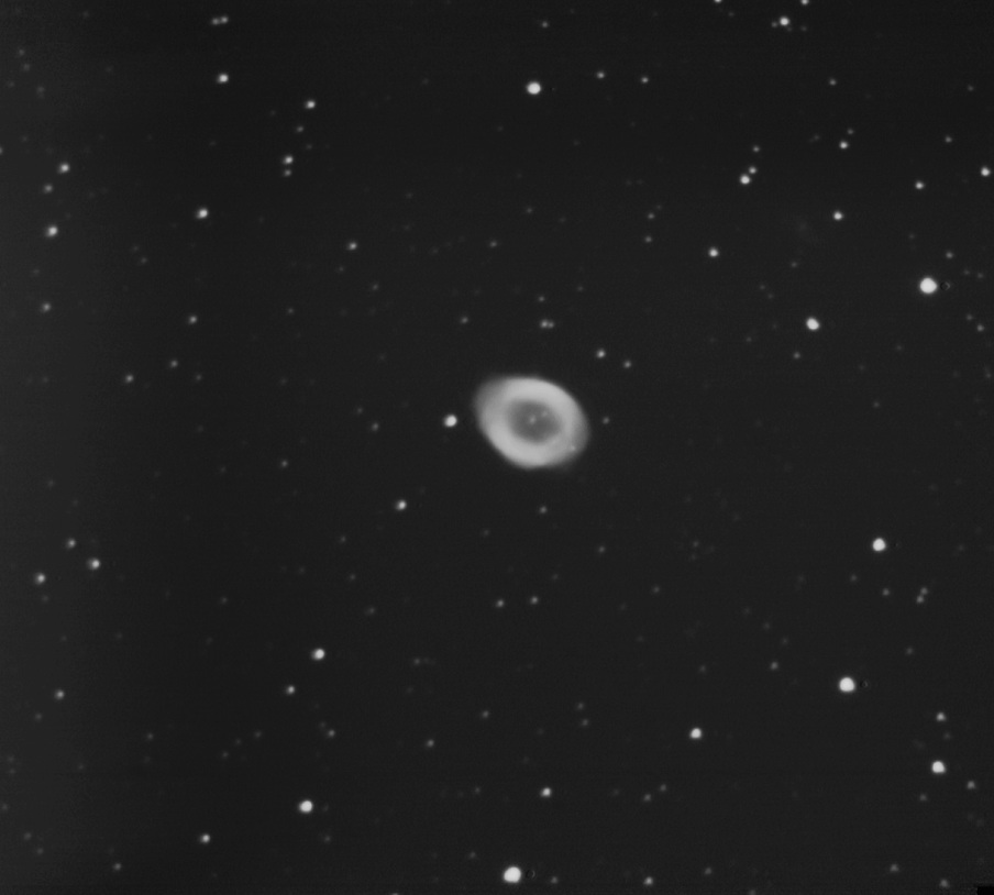 Сегодня попробовал снять м57-Кольцо в Лире-ШК10,редуктор 0,5,автоведение,с балкона,камера люминёра,ДСС,637шт 3,5 секундных кадра,больше выдержку не смог поставить, атмосфера "кидала" изображение в разные стороны- второй раз в жизни такое видел. Начинаю задумываться о цвете,надоело моно.  Просмотров: 887