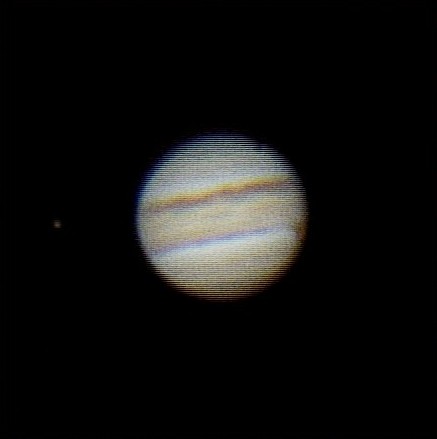 Юпитер. Атмосфера 2-3/5, снимал после дождя, порывистый ветер. sw1149eq2 ccd 1280x720(30kc)+лб2х 5% из 1500к pipp/as2/rs6 и одиночник с спутниками 1/4c. iso 800 балкон
