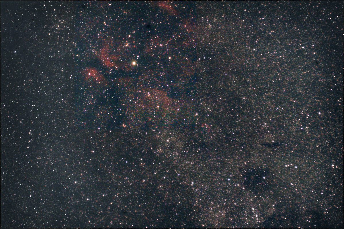Цитата: "Лебедь" Денеб по центру и ниже часть туманности N7000, IC5070 север с лева. Неплохо, Пеликан влез в кадр. Я недавно пробовал снимать окрестности ее соседки Садр, но итог не очень.