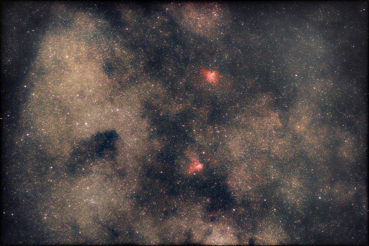 Цитата: от чего-же ! туманы хорошо проявились Хотел посмотреть как проявится гамма и 6888. Гамма относительно неплохо выделяется, а вот серп растворяется в звездах , наверное для фотографии данных объектов нужен узкополосник?