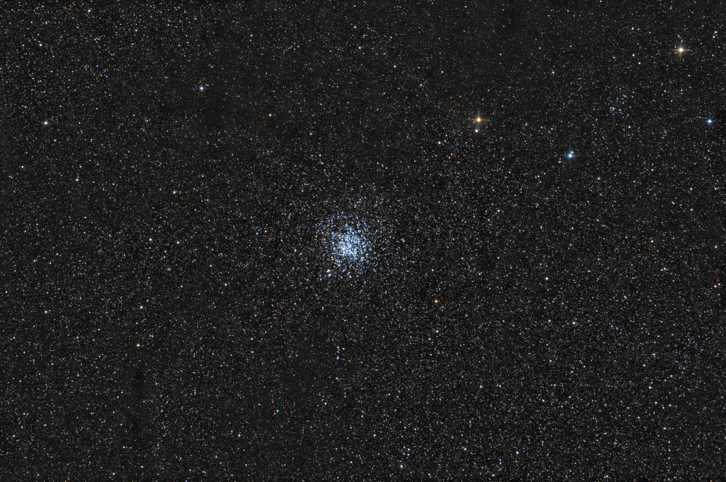 Объект 399 в каталоге Коллиндера или астеризм Вешалка (в Харькове эту вещицу называют "тремпель"). Справа внизу также поместилось небольшое рассеянное скопление NGC6802. Поле зрения 1,9 на 1,34 градуса. Север внизу - именно так этот астеризм видно в короткий Ньютон с широкоугольным окуляром. Снимал две сессии по полчаса, в ночь на 19 и на 20 августа, после выключения "западных" фонарей, "южные" фонари у меня не отключают Ньютон 130/650+комакорректор на ЕКУ3-2 с приводом, Кэнон550, исо6400, 217кадров по 15сек, всего около 55мин. Балкон многоэтажки, красная зона засветки. Масштаб 50%.  Просмотров: 1411