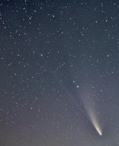 20.07.2020 00:53 Одиночне фото, ручне ведення Обладнання: (Nikon D5100, AF-S NIKKOR 18-55 mm 1:3.5-5.6) - (1) (Arsenal 150/750, swa 4mm, asi 120 mc-s,eq 3-2) - (2) Параметри: 220.2 с., F 5.6, iso 100, 55 mm (1) було розміщене на (2) (1) фотографував, а за допомогою (2) супроводжував ядро комети Кроп, масштаб 25%