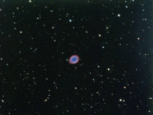 И ещё проба ( М57 ) на ньютон 150\750мм,в фокус не попал но колечко заметно,автоведение,с балкона,камера RisingTehc GCMOS,фильтр UV-IR,114 кадров по 18 секунд,фото уменьшил до 25%,обработка-ДСС,фитстеккер,фотошоп.Честно говоря долго снимать не собирался,было интересно как её покажет при сложении за небольшой промежуток камера.  Просмотров: 731