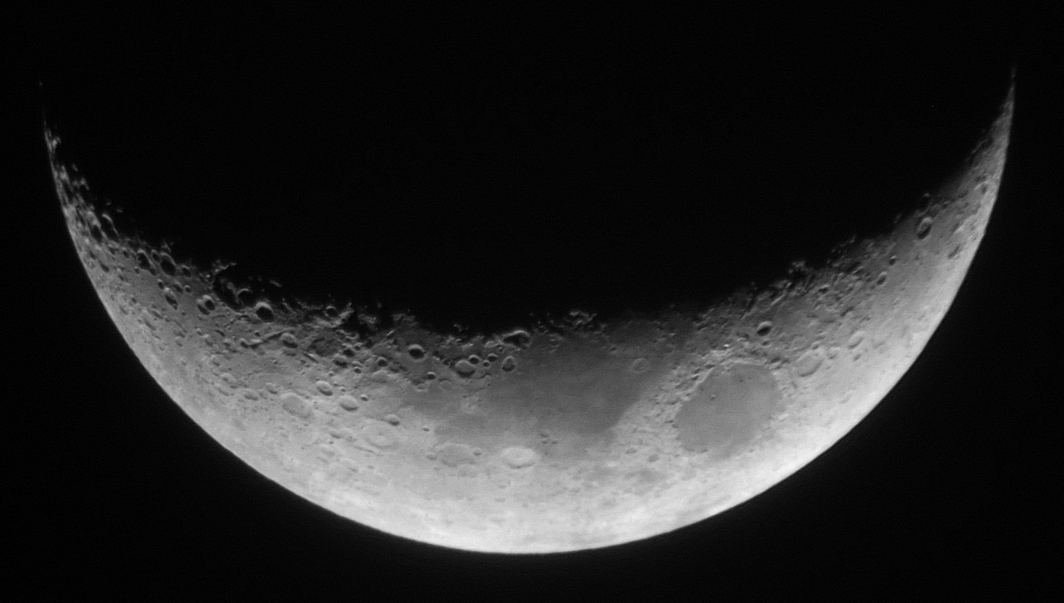 Поселок Высокий. Убывающий серп в ночь с 3 на 4 Августа. HEQ5 Pro SyncScan + Arsenal ED80 +ЛБ5х+Кэнон100D, RAW-видео 1920*1080,23к/с, iso 800. В обработке ролик 10 минут (Отобрано 4000 кадров из 18000) с последующей обработкой Pipp, Autostacker Registak.