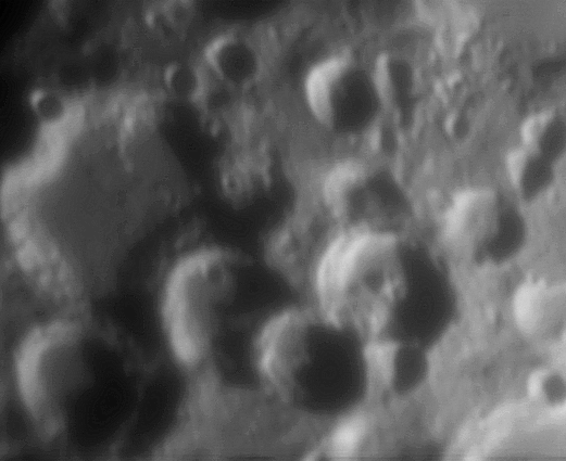 Луна (20,08,2018г) труба SW1021 на HEQ-5, камера *Люминера*, прямой фокус-ЛБ2х-ЛБ5х. Группа кратеров Orontius,Saussure,Huggins,Nasieddin,Miller. Обработка: PIPP, AS2, RS6,FS. Ролики по 2000к. 30к/с, стек 10%