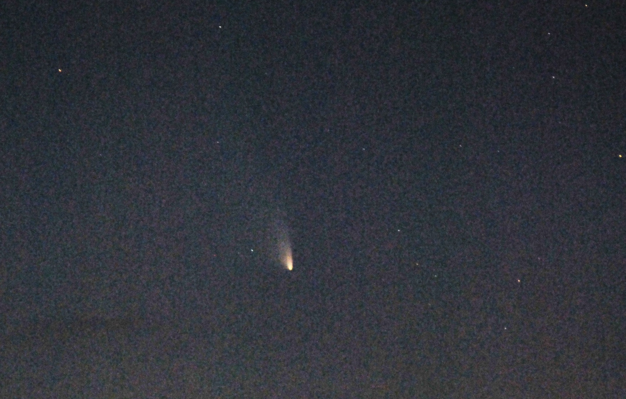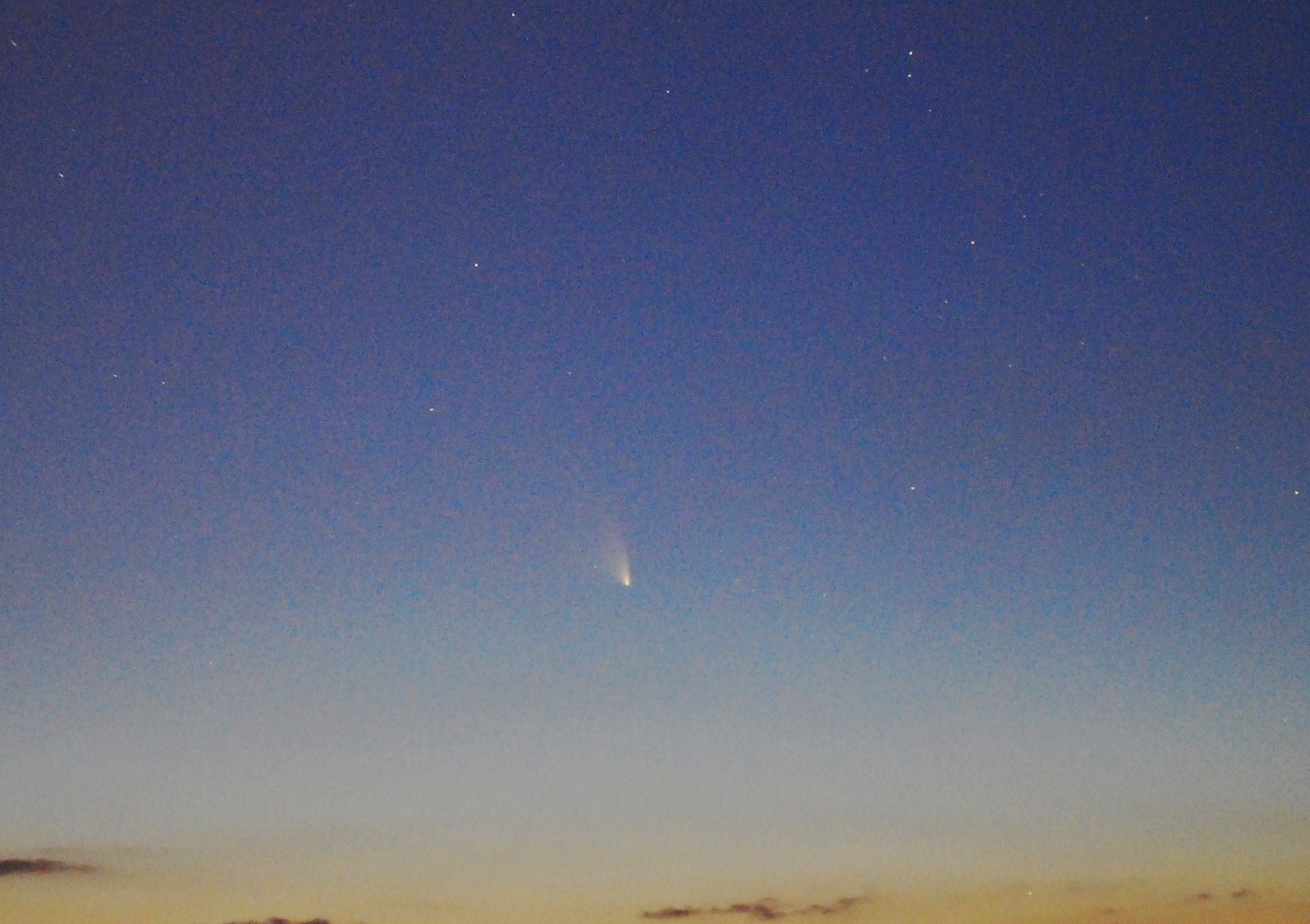 Комету PanSTARRS в тот вечер я фотографировал еще одним обьективом менее удачно, но изображение в кадре практически полностью повторяло то что я видел в гид ЗРТ-342 с D=75mm ,F=750mm и увеличением 40*.Снимок 18.03.2013 17h15m UT комета C/2011 L4 PanSTARRS обьектив Юпитер-37А на камере NikonD60 1×3s ISO1600, легкая коррекция по якрости и контрасту .