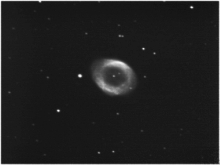 Решил попробовать снять кольцо в Лире на ШК10 без редуктора ,опорных звёзд не было на кадрах ДСС не принял почти ничего- решил обработать как планету регистаксом 5,сложил около 200 штук 7-ми секундных кадров.Получилось!  Просмотров: 677