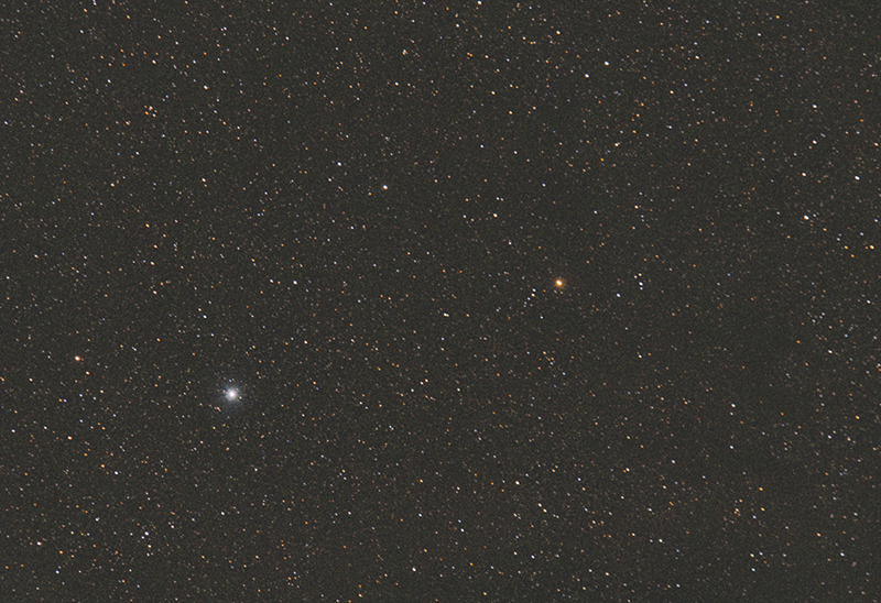 Размещу в этой теме  Кроме основного объекта, шарового скопление М92, в поле зрение можно найти еще несколько объектов из каталогов NGC, IC и даже PGC. Именно этим и обусловлено такое кадрирование. Балкон многоэтажки, красная зона засветки. Рефлектор Ньютона SW130/650 + комакорректор SW на EQ5 с приводом, Canon 550D, iso6400, 257 кадров по 20 сек. Север вверху. Широкое поле - примерно 2,1 на 1,36 градуса. Масштаб 40%  Просмотров: 1276