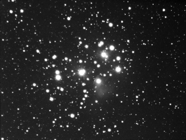 Ну и проба Плеяд 34 кадра по 45 сек. Диафрагма 4. Ну... плеяды не были основным объектом съемки, так что отсюда и слабое накопление света.  Просмотров: 600