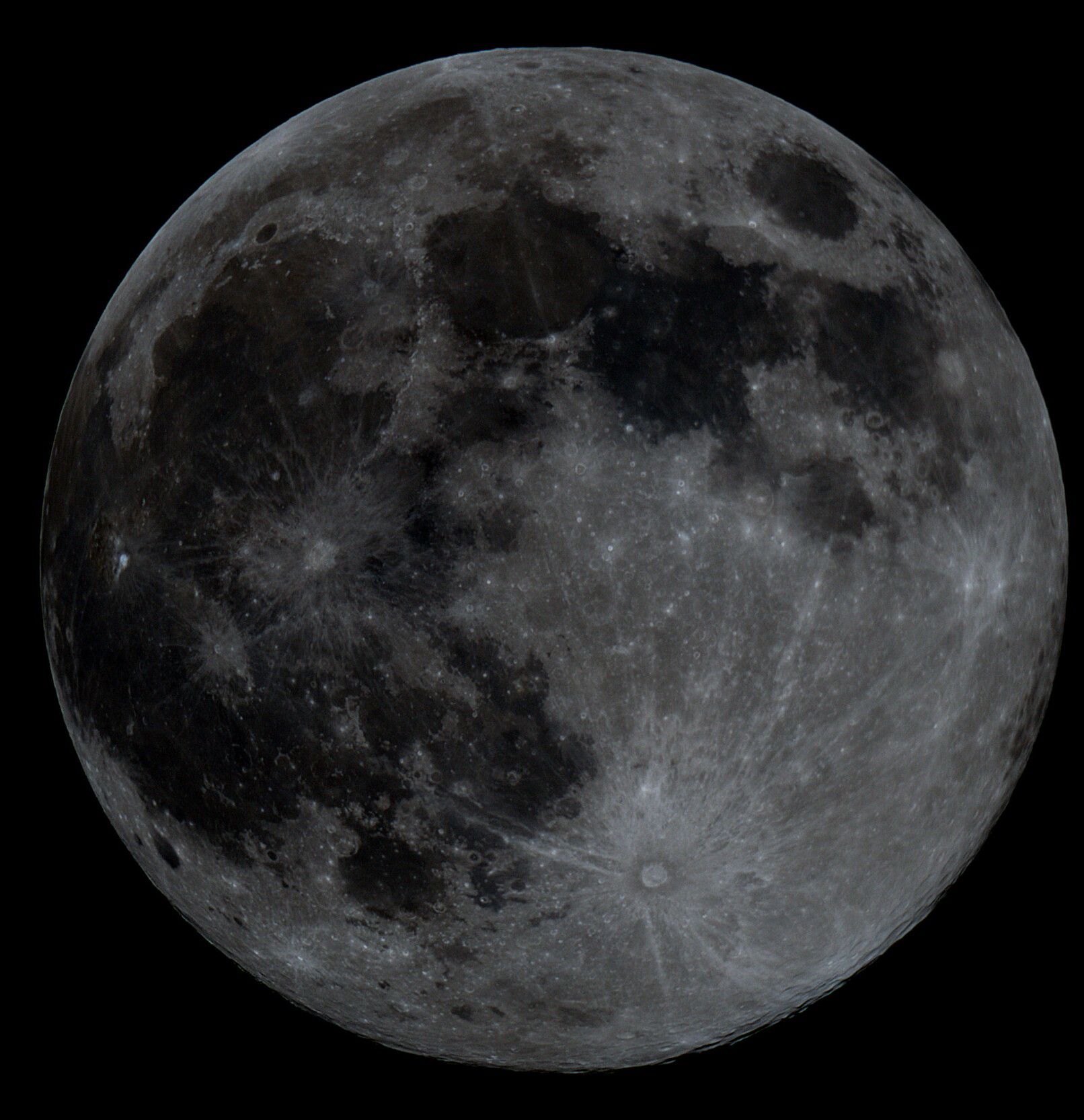 Місяць 20-21.03.2019 Складання 7 фото, накладання на фон, підсилення кольорів Облалнання: Arsenal 150/750 EQ3-2, Nikon D5100 Параметри зйомки: Фон: ISO-100, 1/6 c., jpg Місяць: ISO-100, 1/1500 c., jpg Обробка: переформатування, обрізка(2000х2000), вирівнювання 7 фотографій; складання, вейвлети, RGB balance, збереження у форматі PNG 16bit; обробка в графічному редакторі: яскравість, контраст, насиченість, вирізання фрагмента фотографії, накладання на фон, трансформація і переміщення, збереження в PNG найвищої якості (61,47 мб.) Фото зжате (480 кб)