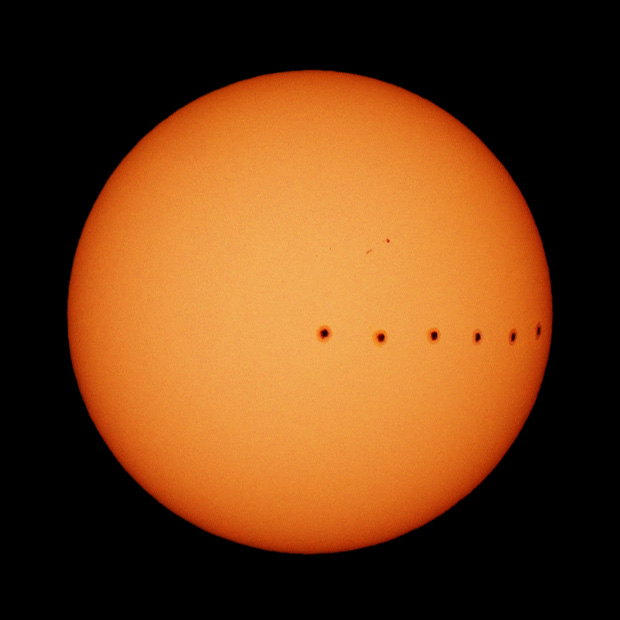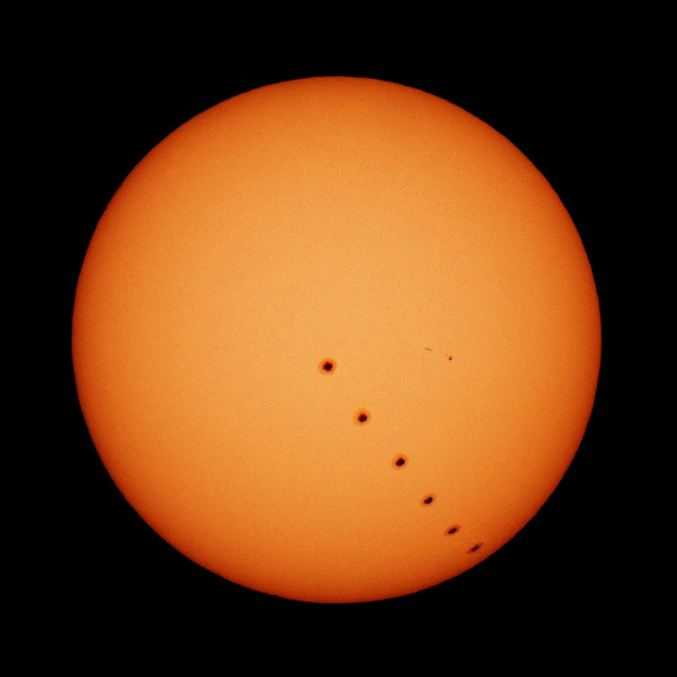 Чесно говоря не понятна суть спора Но чтобы таких споров не возникало, в астрофото принято располагать север вверху или указывать направление на север. Виталий снимал на азимутале, ориентация матрицы - зенит вверху, направление на север и наклон оси Солнца меняется в зависимости от его положения на небе. Вспомним вид созвездий на востоке, юге и западе Вот так и ось Солнца наклоняется относительно азимутально расположенной матрицы. Кстати, от одной фото к другой это наблюдается, видимо снимки сделаны не точно через сутки. Вот подравнял в ФШ и получилось такое движение пятна  Просмотров: 919