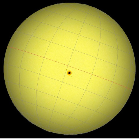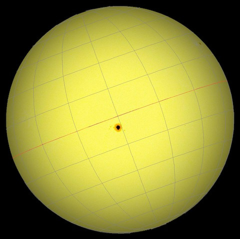 Близко к истине, но не совсем так. Вот здесь и сказываются углы наклона солнечной оси к плоскости орбиты Земли, и этой плоскости к углу наклона оси вращения Земли (т.е. направление на Полярку, на Север) Для наглядности Солнце с сеткой координат за 3 часа до полудня, в полдень и через три часа после полудня.  Просмотров: 917