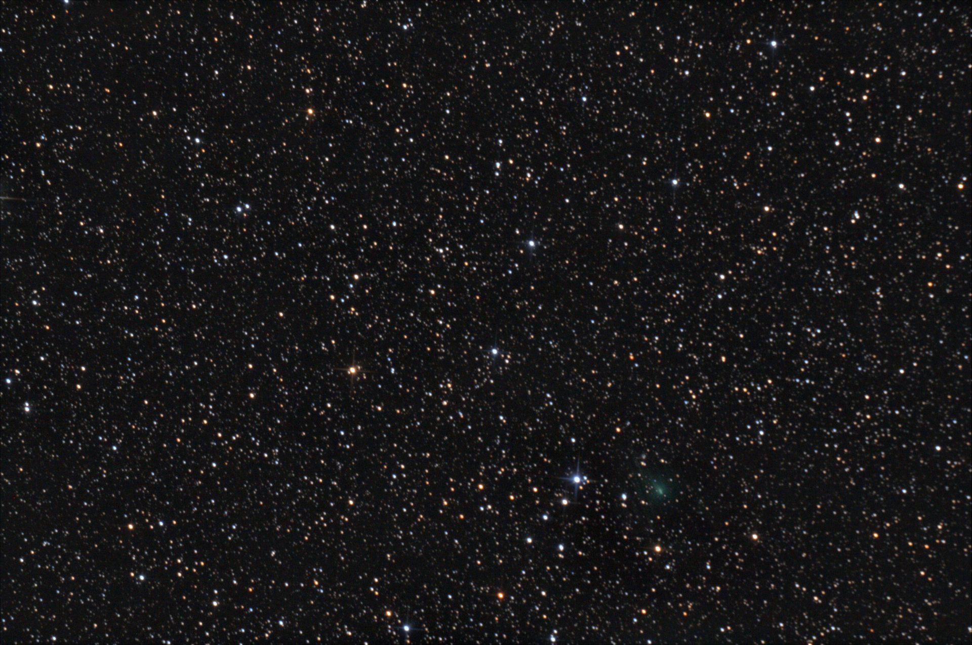 Комета C/2017 T1 Heinze - 2018 1 13 Параметры: Телескоп SW N200\1000, камера Canon 550Da, ISO 1600, суммарная выдержка 30 минут. Обработка в DDS, FitStecker, PS7 Снимал кадрами по 2 минуты, но и это время для неё слишком большое... ядро очень вытянутое получается, а хвост ели виден -(