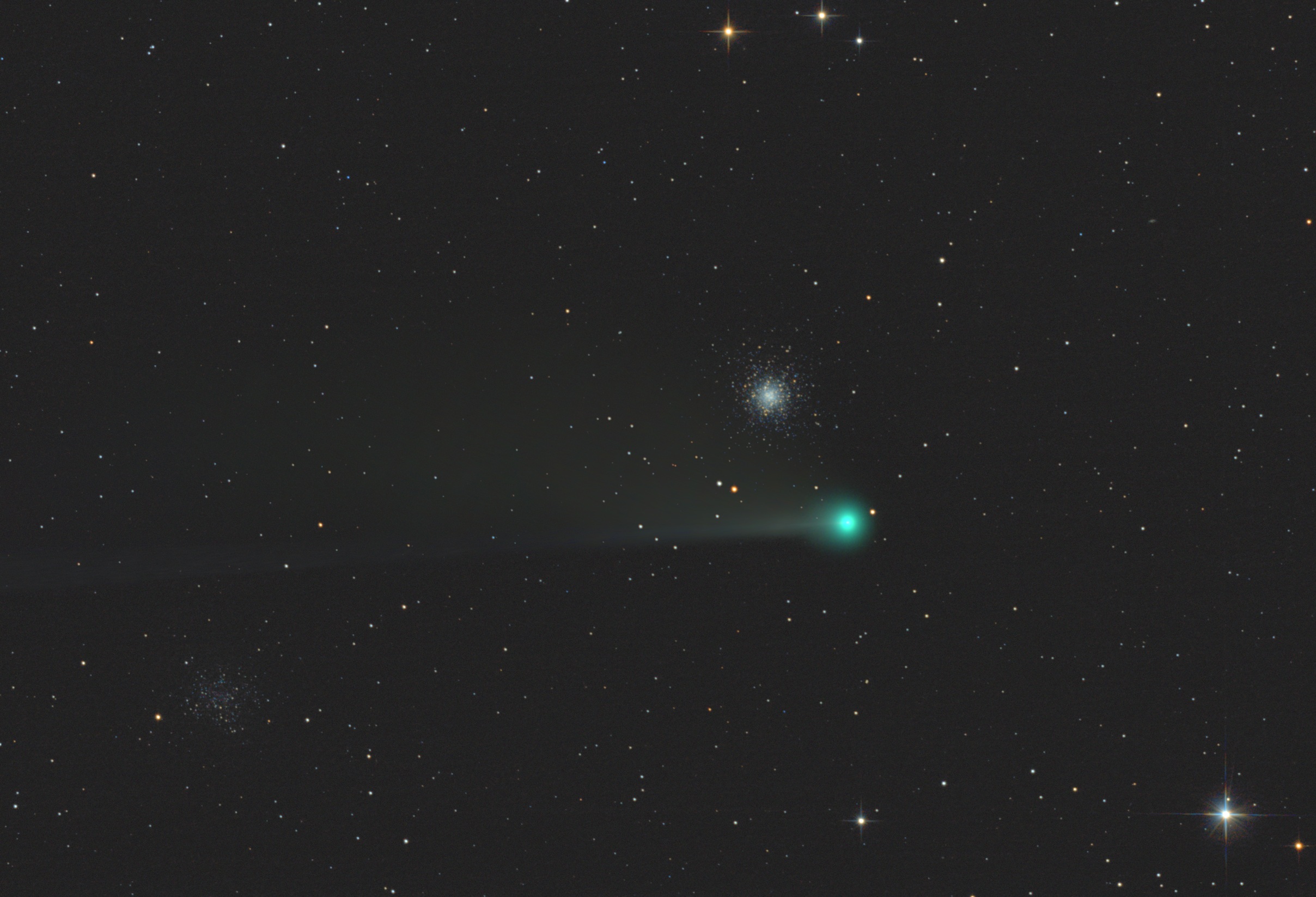 Не дожидаясь восхода Луны, визуально наблюдал сегодня вечером комету рядом с шаровым звездным скоплением М53. Комета выглядела заметно ярче и крупнее. Хвост кометы не различался. Более яркое ядро и постепенно ослабевающая к краю кома. Тем не менее, комета все ещё представляет собой интересное зрелище. Телескоп SW2001 с окулярами 30 и 17 мм.