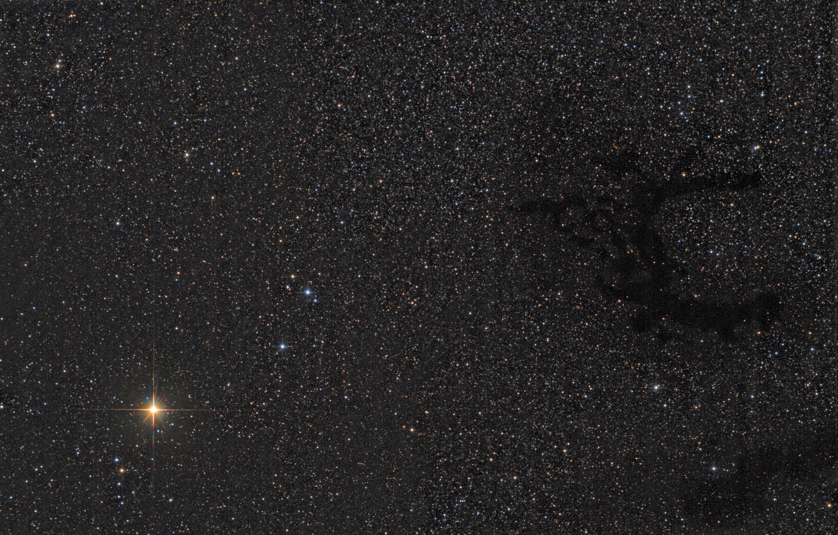 Игорь Астроскоп писал(а): Участок Млечного Пути в созвездии Орел. Слева внизу фото расположен яркий оранжевый гигант Таразед (или Гамма Орла), а в правой части - темная газопылевая туманность Барнард 142, также имеющая собственное имя Литера Е. Балкон, красная зона засветки, Canon1100D + SW130/650PDS + комакорректор SW + EQ5 с приводом. Сумма 218 кадра по 30сек, исо3200. Поле зрения 2,1 на 1,35 градуса. Север вверху. 2019_10_11+13+15_B142+Y-Aql_218f30s32i_40%.jpg