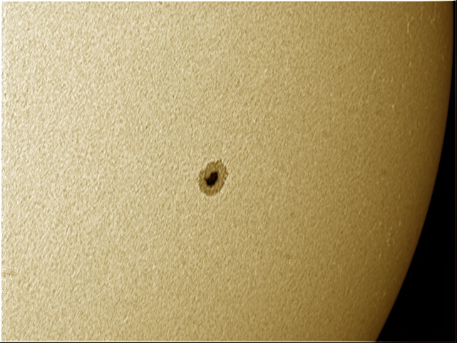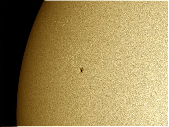 Вот ещё сегоднешнее Солнце- короткий рефрактор 80мм,фильтр френж киллер,с балкона,автоведение, почти 2500 кадров,регистакс 5,ФШ,фото немного увеличено-псевдоцвет.  Просмотров: 615