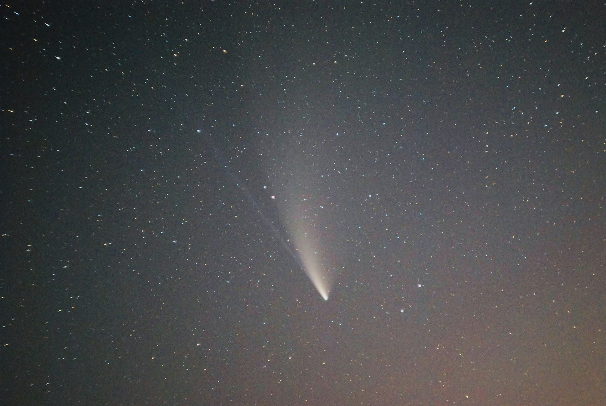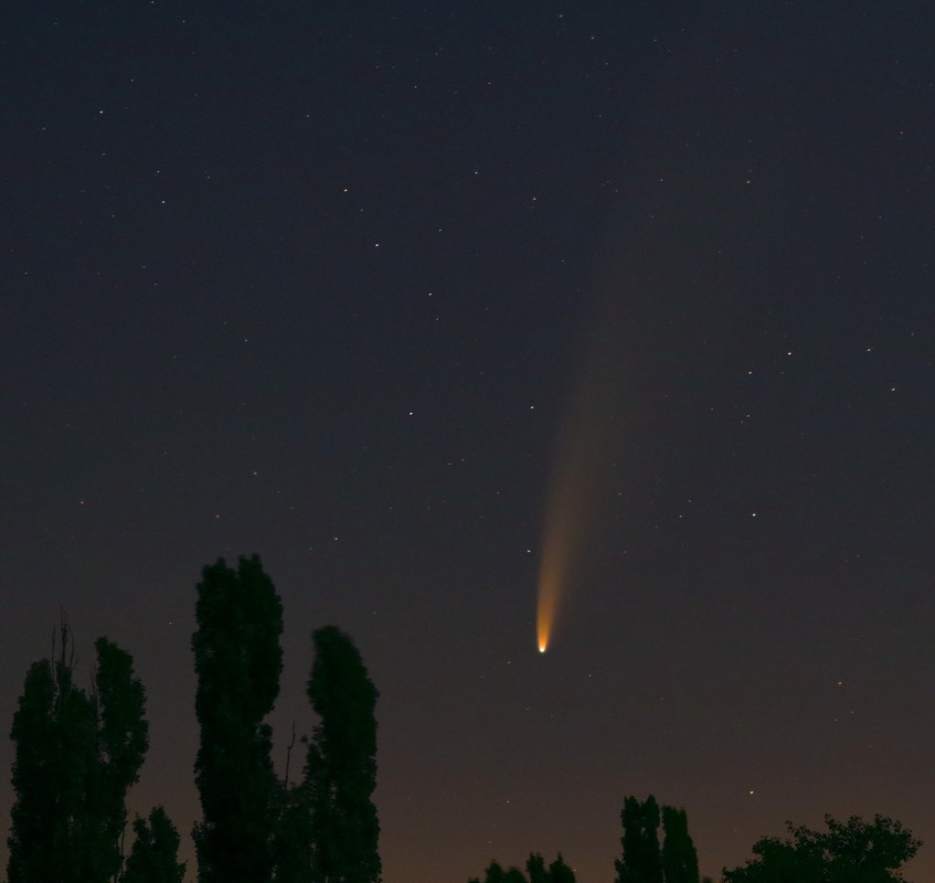 С трудом таки восстановил аккаунт и "влез" в Сеть : Всем Здрасте ! И лучше позже ,чем никогда - комета C/2020 F3 NEOWISE сквозь облака и росу 19 июля 2020 в 23:26 ; 1кадр , 30s, 3200ISO, Helios-44M, Nikon D60.