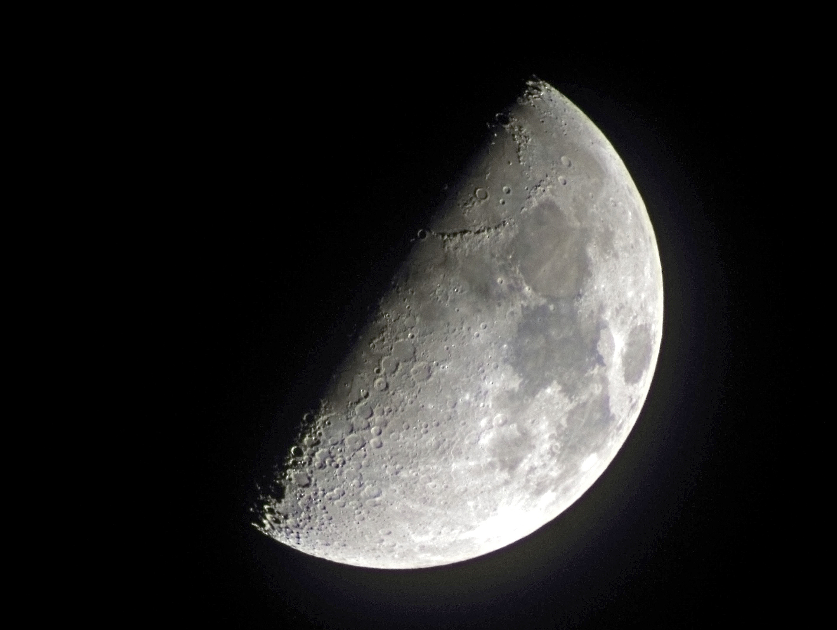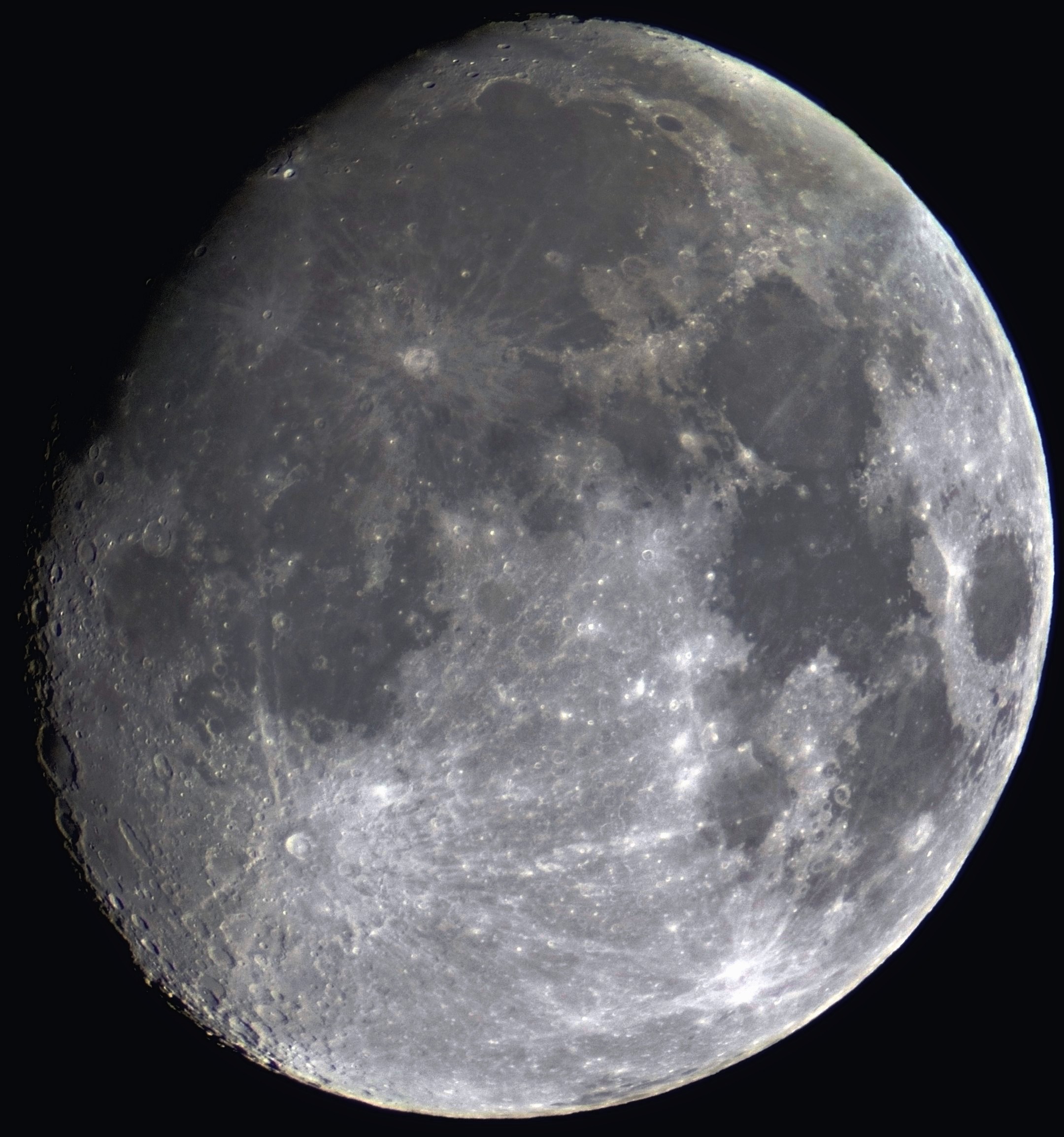 Через телескоп фотографировать возможностей больше, и творчество проявляется Луна сегодня 05.04.2020.EQ2-mod S/W 70x500 + барлоу х3 nikon 1j1 фокус 1500(3000) . Целиком в такой фокус луна не помещалась, пришлось сложить панараму из 11 кадров.