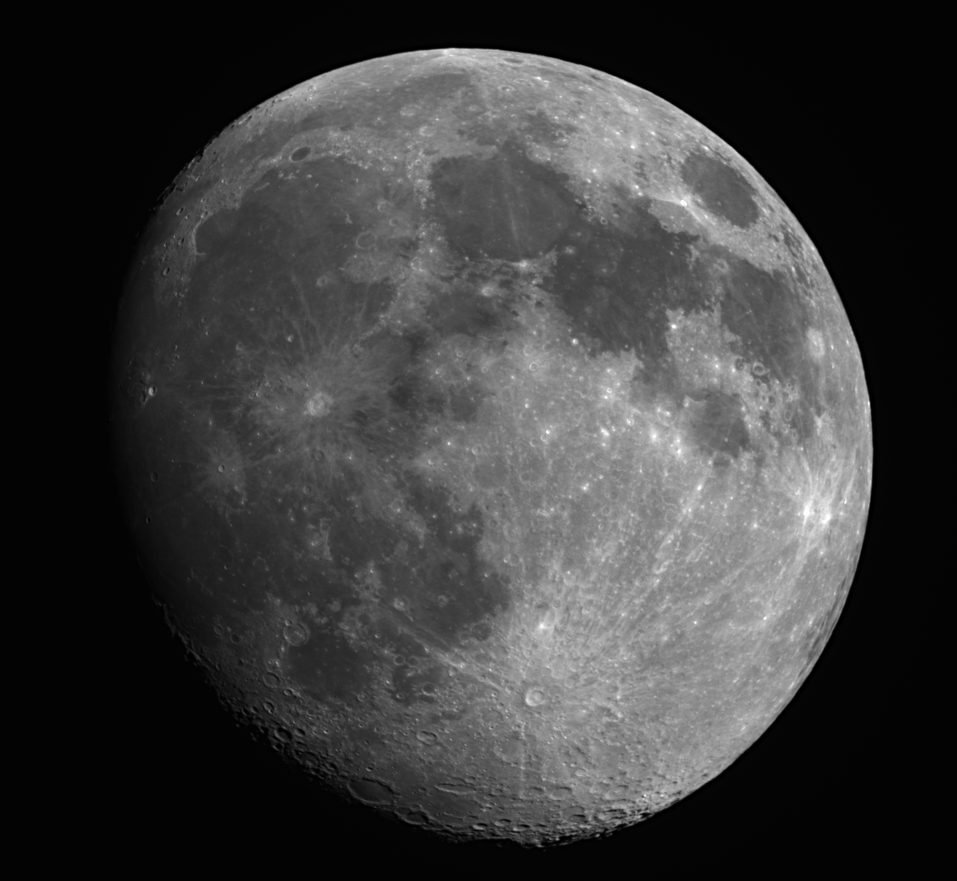 Луна сейчас (5.04.2020 около 21:30) В сложении 500 кадров. Юпитер 21М (фокус 200 мм.) Камера ZWO ASI 178MM с красным фильтром. Примерно так она выглядит в 20-ти кратный бинокль. Только объемнее. Улично-балконно-оконная обсерватория