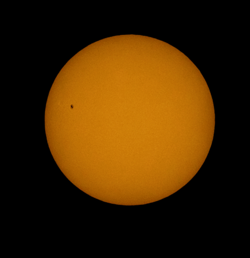 Солнце с группой пятен №2738 г.Киев. 10.04.2019 г. Фотоаппарат: Nikon D5100 Обьектив: Nikkor 55-300 мм Неподвижный штатив Параметры: Фокусное расстояние 300 мм F-11/ISO 100/ 1/2500 сек. солнечный фильтр из пленки Baader Planetarium, одиночный кадр. Кроп 80%