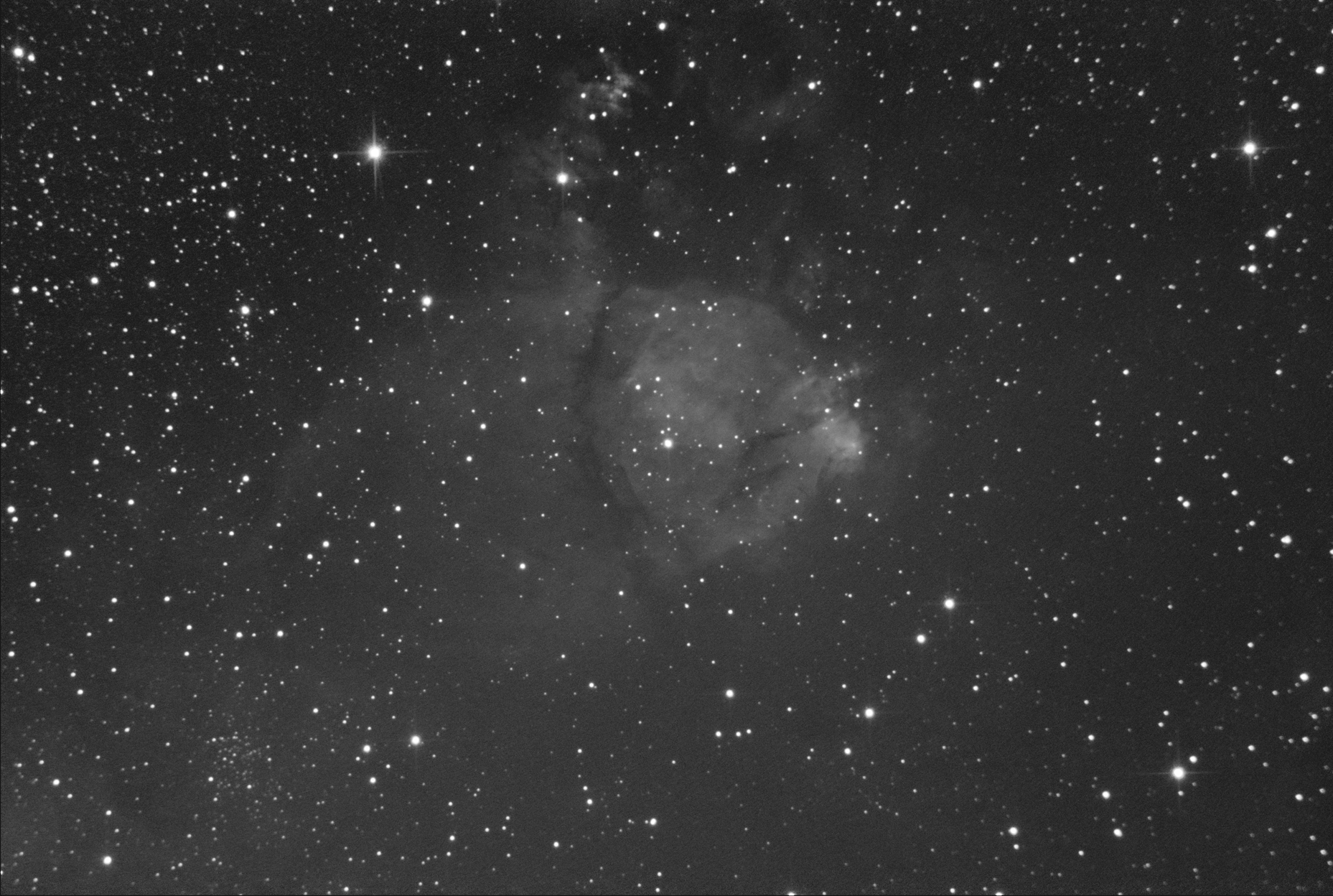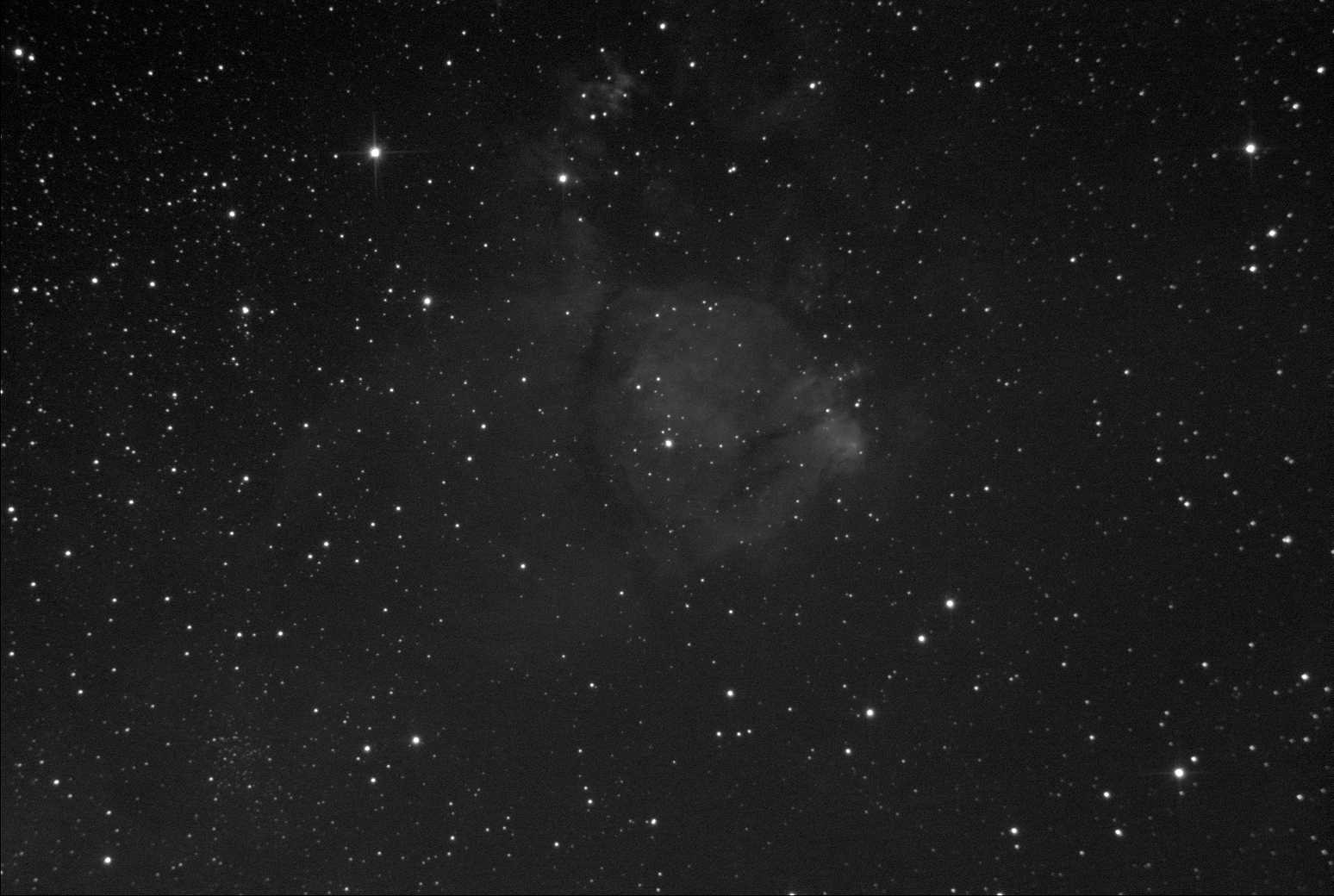Добил рыбу до 3-х часов. Пожалуй на этом пока остановлюсь. Любопытство удовлетворено.  Итого: 90 кадров по 120 сек. Объект снят во время около полной Луны с красным фильтром. Место и оборудование без изменений. Масштаб 50%. Север вверху.  Просмотров: 1389