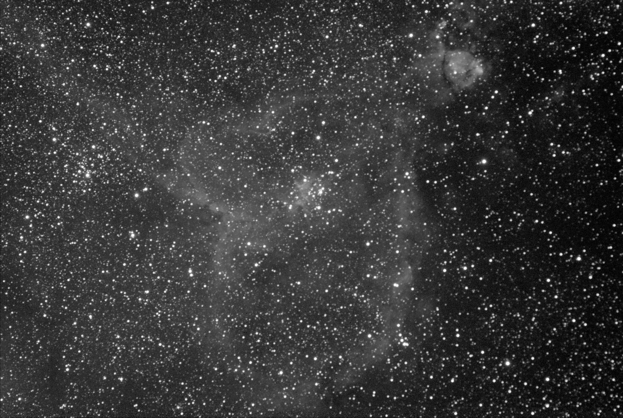 Михаил Астроскоп писал(а): Добил рыбу до 3-х часов. Пожалуй на этом пока остановлюсь. Любопытство удовлетворено.  Итого: 90 кадров по 120 сек. Объект снят во время около полной Луны с красным фильтром. Место и оборудование без изменений. Масштаб 50%. Север вверху. IC1795_90f120sSigma50pV2.png С убыванием луны и накоплением сигнала, понемногу принимает очертания