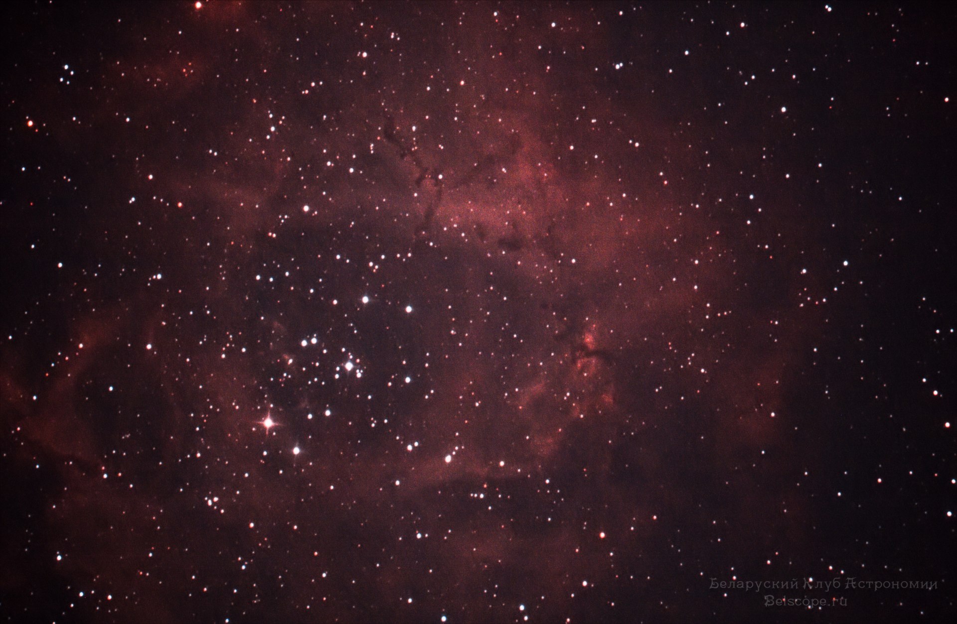 Туманность с моего выезда 4 декабря 2016 года. Съёмка вблизи города Минска. (д. Синело) Туманность Розетка (англ. Rosette nebula, NGC 2237) — гигантская эмиссионная туманность, расположенная вблизи одного из больших молекулярных облаков в созвездии Единорог галактики Млечный Путь. Является областью ионизированного водорода, где происходят процессы звездообразования.