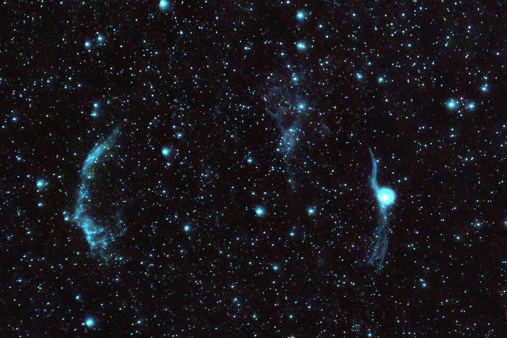 Alexey Rak писал(а): Что-то этот сезон не очень удачен на хорошую погоду, поэтому приходиться перебирать старый материал. Вот мой вариант "Bocтoчной Bуaли" (или NGC 6992_NGC 6995 _ Туманность “Рыбачья сеть”). Съемка 22-23.08.2020г. -Arsenal 150/750 + HEQ5PRO NIKON D90 150кадров по 120с+dark+flat APT,DDS,FITStacker,PS