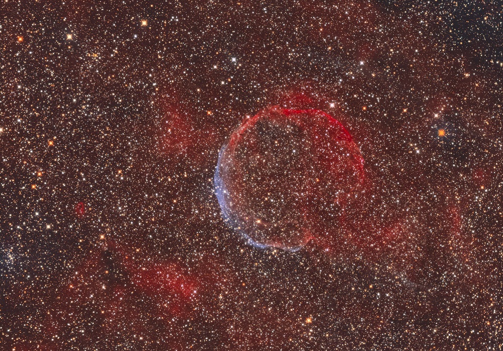 Oleg Lavigne писал(а): Об'єкт: Туманність CTB 1 (ABELL 85) SUPERNOVA (HOO) v2 2021 CTB 1-залишок наднової (SNR) у сузір’ї Кассіопеї та джерело оптичних, радіо та рентгенівських випромінювань. Недавнє дослідження повідомляє, що пульсар народився із наднової, яка створила CTB 1 і викинулася в галактику, подорожуючи зі швидкістю, що перевищує 1000 км/с. Місце і час: с.Головківка 09.09.2021-10.09.2021 Лайти: Ha:26х600 сек OIII: 21X600 сек Дарки: 50x600 сек (-15 *С) Флети: 30x2 Телескоп: Newton 6 f3.7 (F3.7) Коректор коми :Paraccor Type 2 Камера: ZWO 294mm-pro Фільтри: Chroma 3nm x2 Монтування : HEQ5-Pro Гід камера:ZWO 290mm Обробка:PIX+Lightroom https://drive.google.com/file/d/1jJBL3r ... sp=sharing Класс