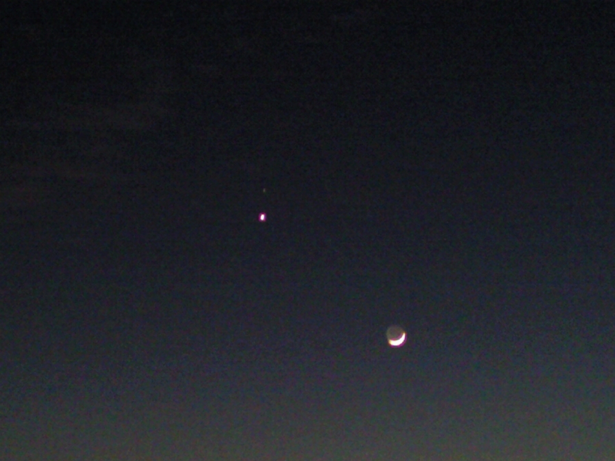 П.С. Сегодня даже у нас в Харькове прекрасно было видно и Венеру с Марсом, и серпик Луны с довольно ярким пепельным светом - но пока домой доехал объекты спрятались под горизонт