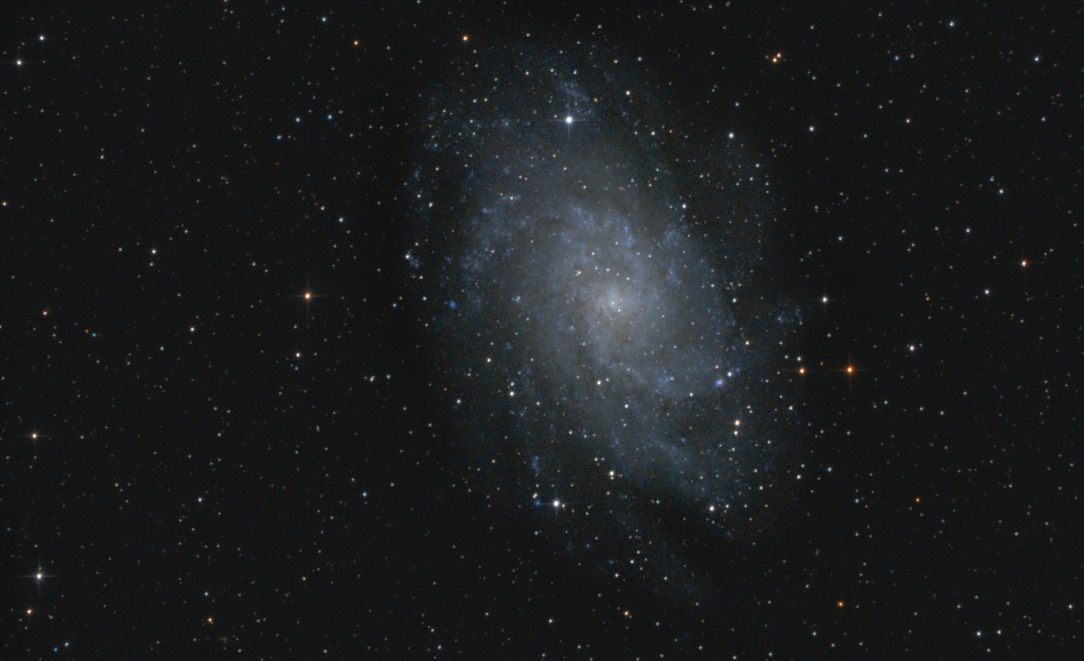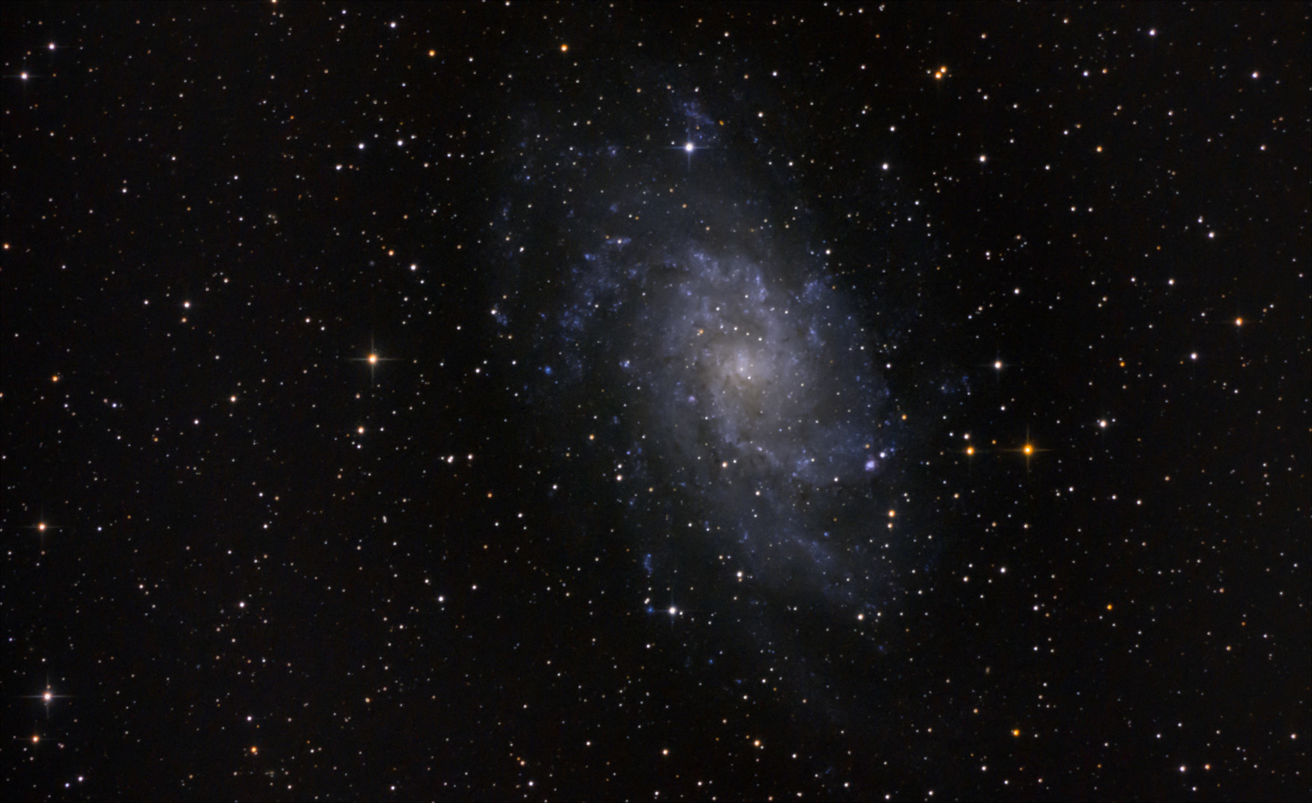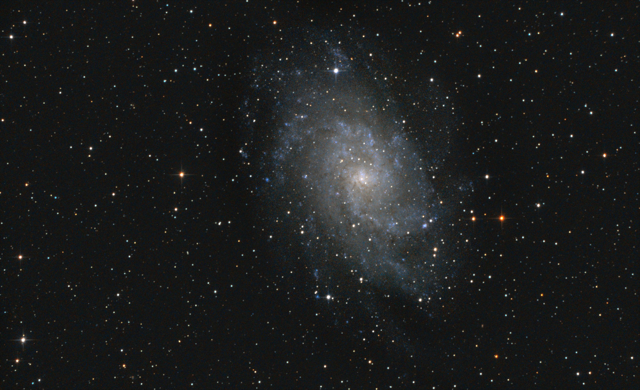 Использовалась яркая звезда справа от центра галактики, она в вершине равнобедренного треугольника с двумя яркими оранжевыми звездами.