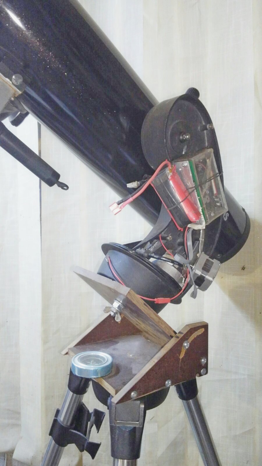 Теперь про механизмы ведения (моторами) . На свою EQ-2 я поставил маломощный шаговый моторчик с редуктором + через редуктор и управляю им с помощью ардуино(подключал и писал программу сам) который питается через микро USB от пауэр-банка 5v., 3-х амперного хватает на 6 часов. На азимутальной стоит на 12 вольт, раньше стоял на EQ-2, после чего поставил на неё самодельный, а на азимутальную оставил этот 12v.