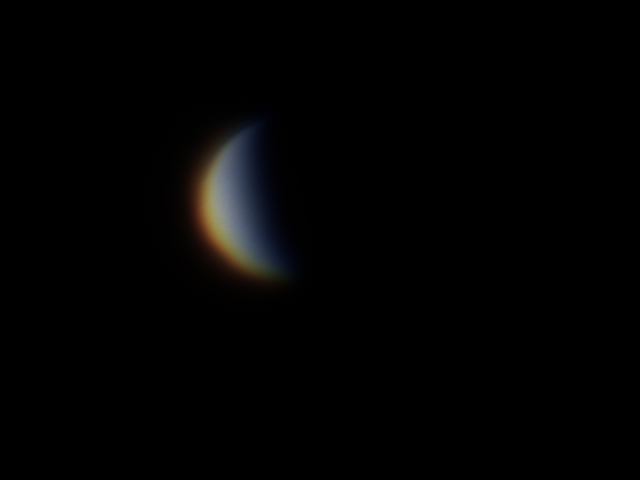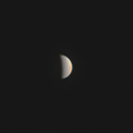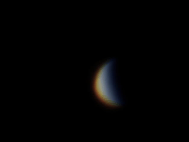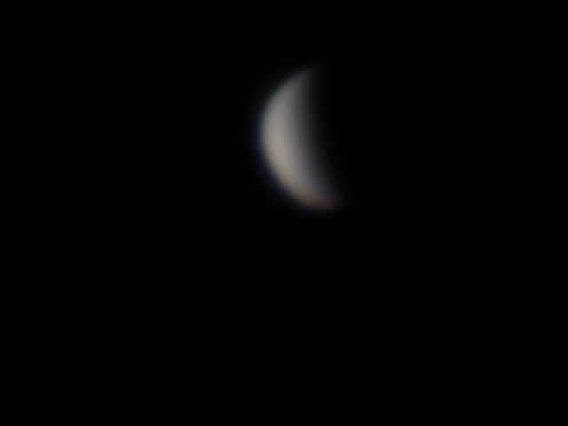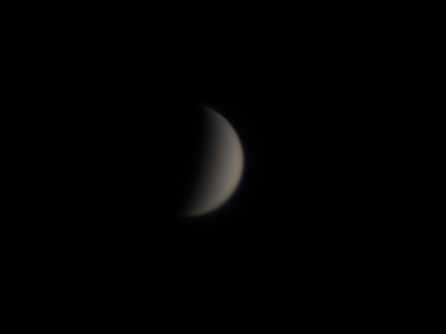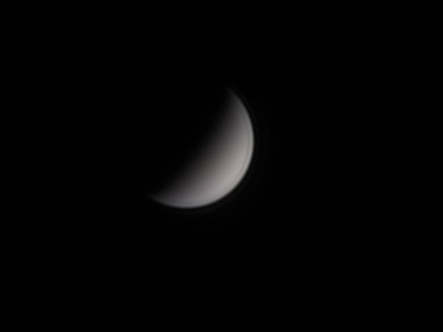 Венера 09.04.2020 (через ЛБ 5х) Arsenal 150/750 eq 3-2, LB 5x, ASI 120 mc-s 640x480, gain 0, 49 FPS Астрономічна видимість 3/5, прозорість атмосфери 3/5 5880 к., 10% Масштаб 100%