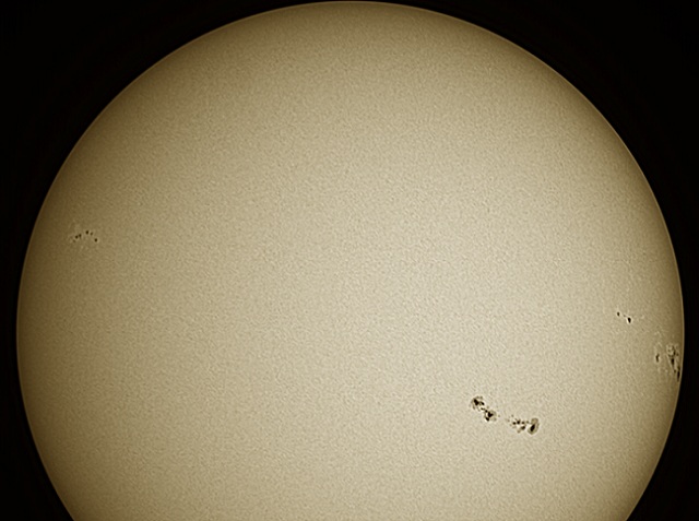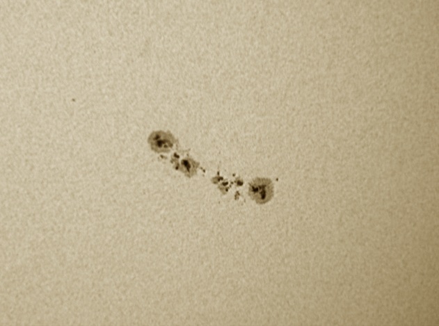 Вот эти пятна каторые снял Виталий уже провернулись,снимал вчера днём,скажу честно забал по сколько где кадров,снимал на короткий рефрактор 80мм,фильтр UV-IR,камера люминёра,с балкона,автоведение,первое фото без барлоу,вторые с барлоу2х,регистакс 5,псевдоцвет в фотошоп..  Просмотров: 826