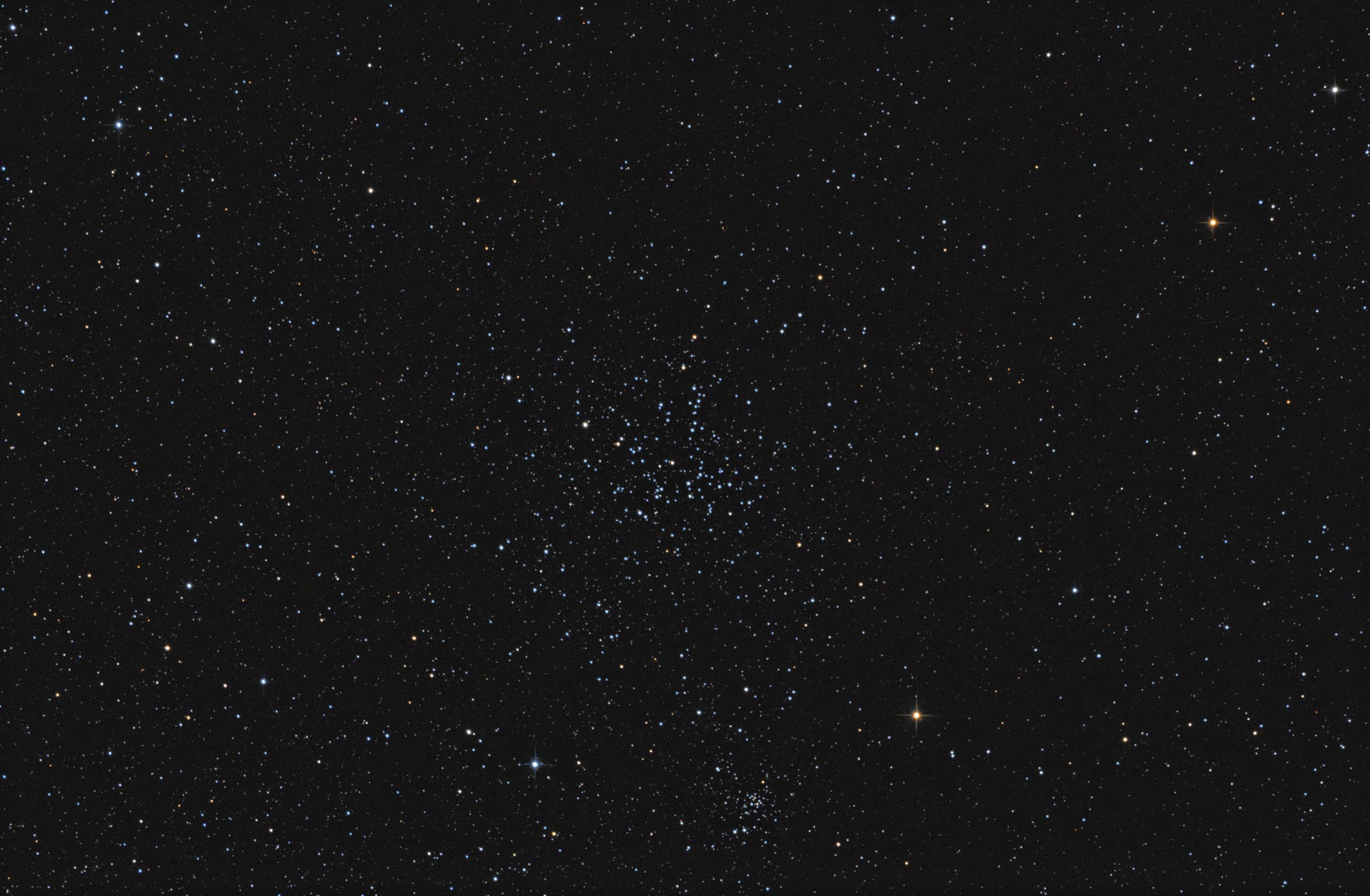 Игорь Астроскоп писал(а): Еще пара рассеянных скоплений в одном кадре - в центре крупное М38, внизу кадра небольшое NGC1907. Созвездие Возничий, поле зрения примерно 2 на 1,3 градуса. Балкон многоэтажки, красная зона засветки, дымка. Рефлектор Ньютона SW130/650 + комакорректор SW на EQ5 с приводом, Canon 550D, iso3200, 132 кадра по 15 сек. Север вверху. Масштаб 50%. v2_2019_03_31_М38_132f15s_i32_50%.jpg На днях его наблюдал, в живую смотрится на много тускнее.