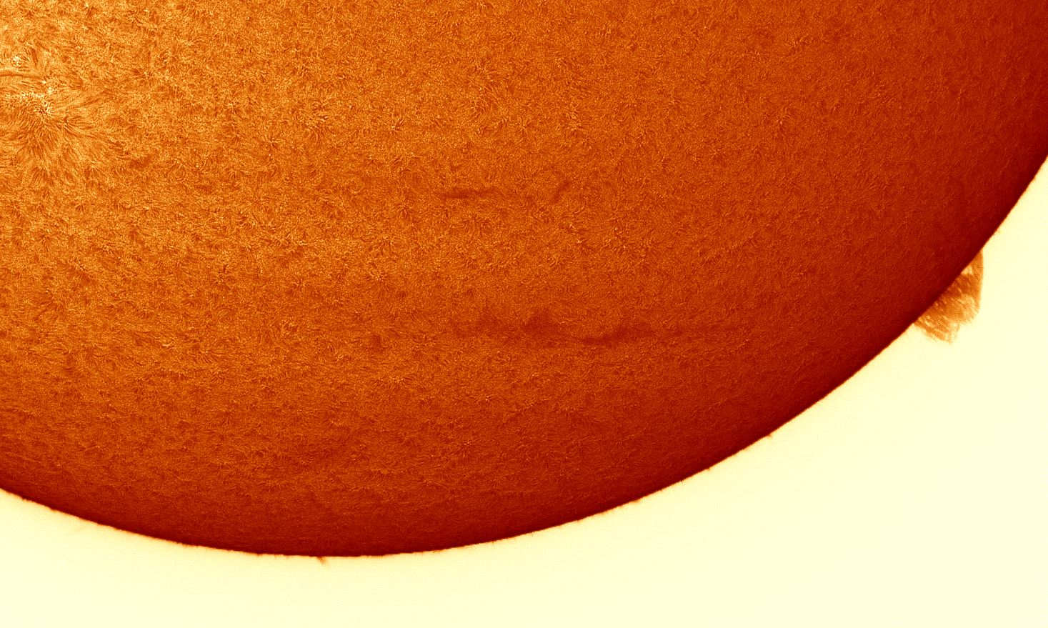 zhurenko yuriy писал(а):Добрый День. Перешел от daystar chromosphere quark на Ha телескоп (достаточно тяжелое решение в финансовом плане). Первый опыт Lunt 80 MT 1800 FT, камера ZWO ASI174MM, ЛБ3, монтировка AVX. Поверхность и протуберанцы сняты отдельно, обработаны в Autostakkert, ImPPG и сложены в Fotoshop с добавлением цвета.