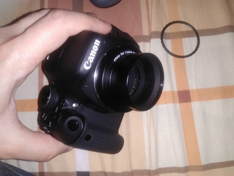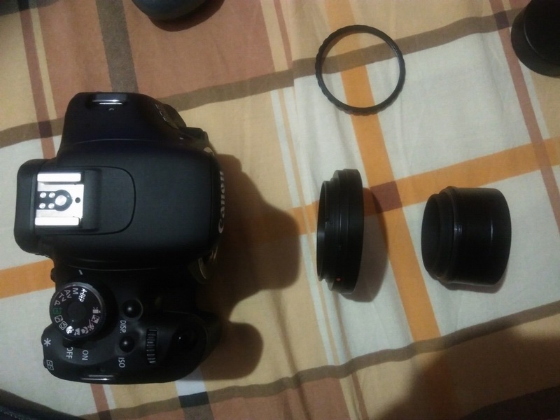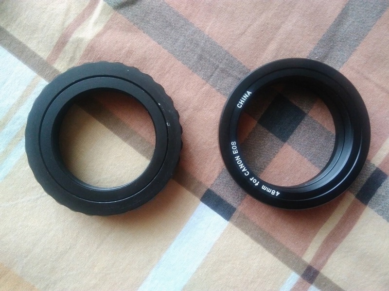 Для вирішення проблеми він замовив інше Т-кільце, яке вище за попереднє (щоправда, результат таких експериментів невідомий). У мене ж є два Т-Кільця, однакові по висоті. Я використовую завжди те, що з надписом «48 mm CANON EOS». Однак інше має внутрішню різьбу, до якої можна прикрутити коректор і при цьому не знімати тоненьке кільце. Утворена система виявиться вищою якраз на товщину того тоненького кільця, яке я завжди знімав. Можливо, це допоможе? Обов’язково наступного разу спробую…
