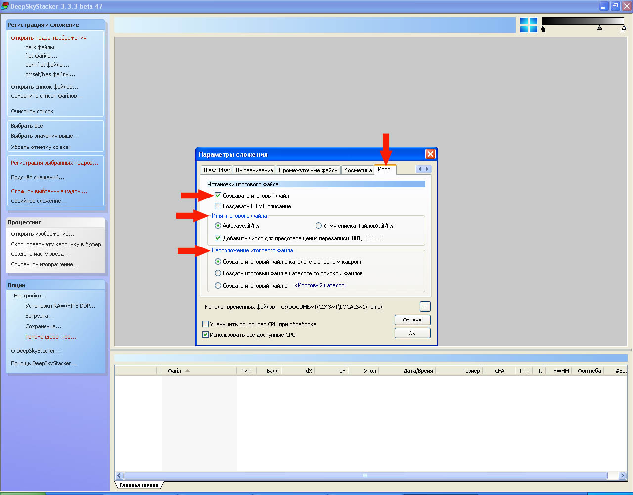 Процесс обработки начнется. Сначала программа поочередно сложит все калибровочные файлы, сформирует калибровочные Master-файлы и сохранит их на диске.  Просмотров: 8288