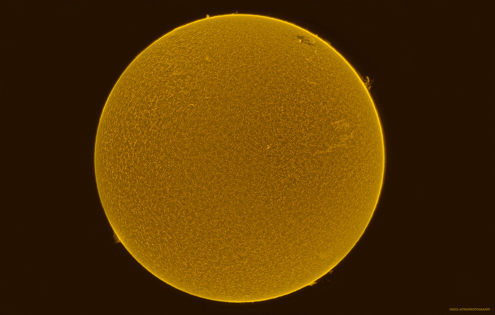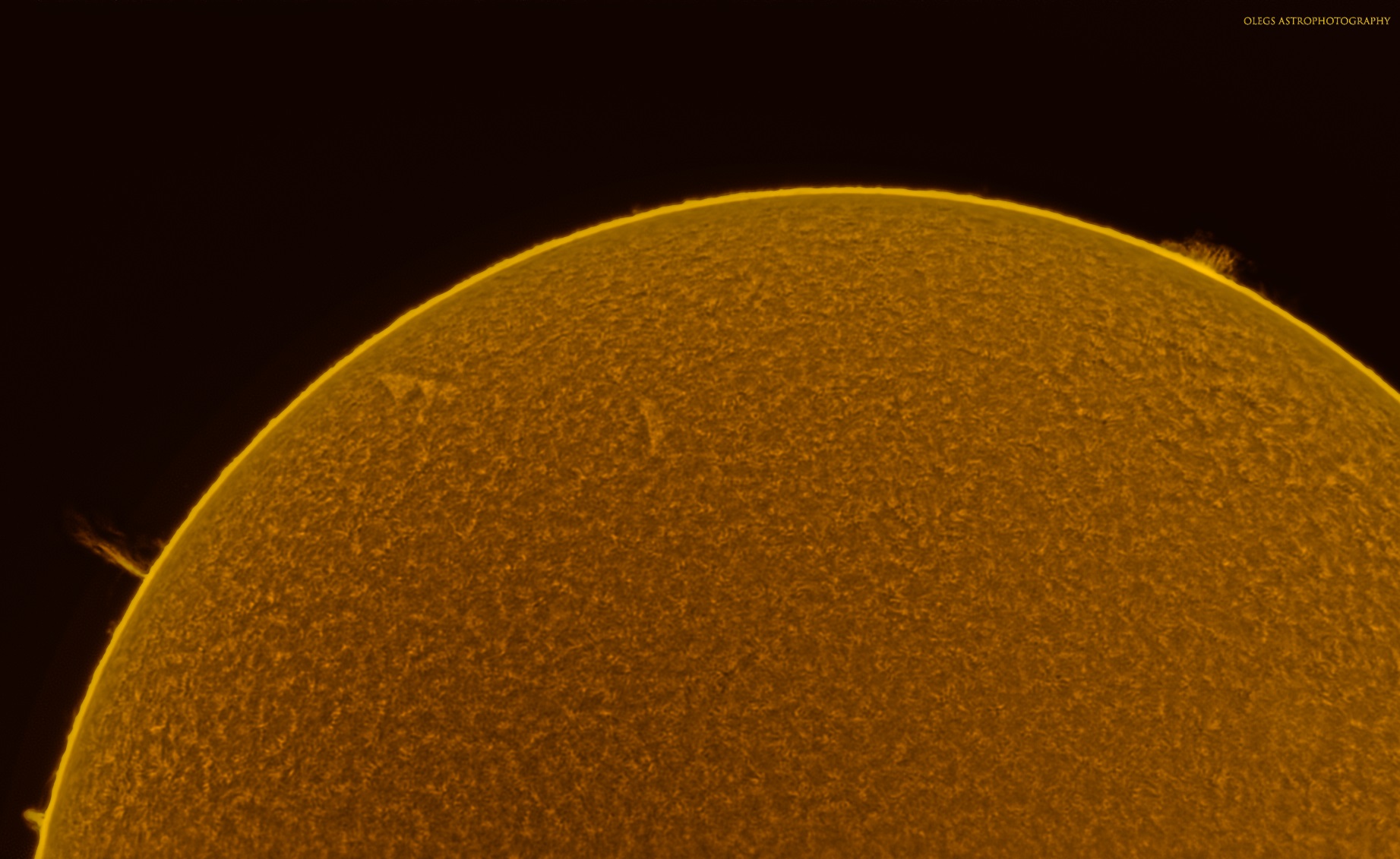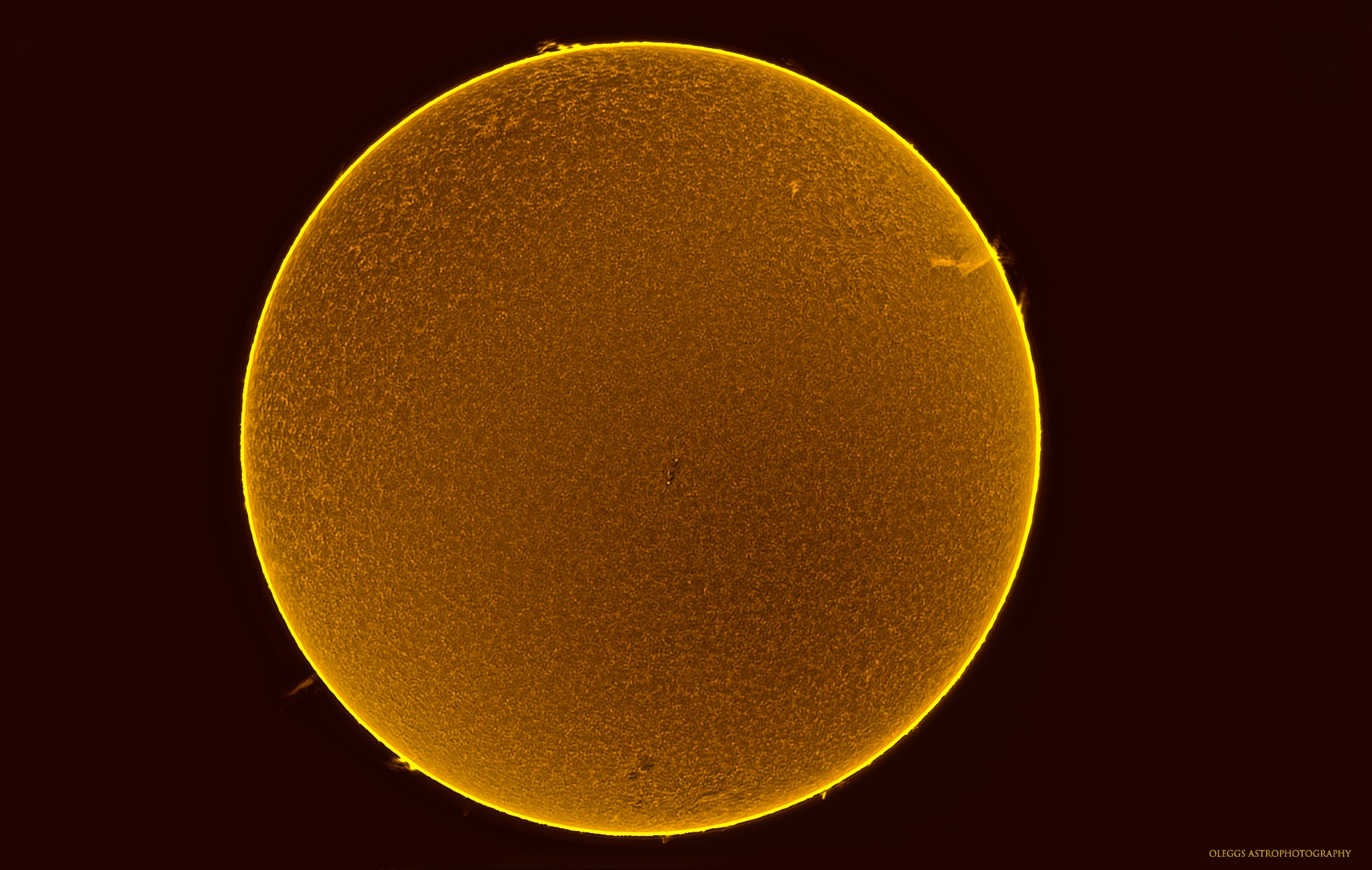 Обєкт: Сонце і протуберанці :binolook: Місце і час: Львів 22.08.2021 Стек : 20% з 5000 кадрів Телескоп: Coronado PST 40mm Камера: ZWO 174mm Монтування : HEQ5 Обробка:SharpCap+Autostakkert+Photoshop